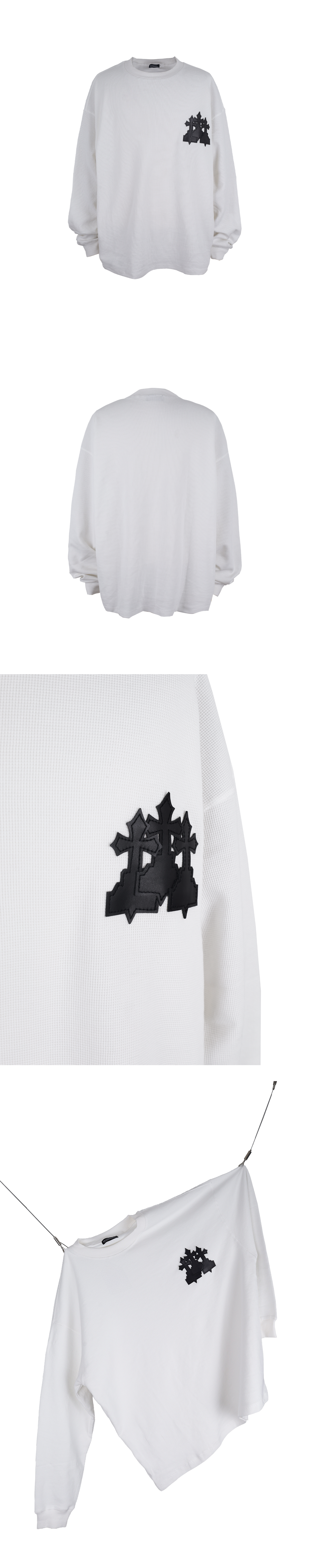 Description REQUIEM PATCH WAFFLE L/S (WHITE 와플 조직은 특성상 세탁 후 5~10% 정도 일시적인 수축이 있을 수 있으나, 건조 후 다시 원형으로 복원됩니다 PATCH : REAL COW LEATHER (패치 소가죽)
