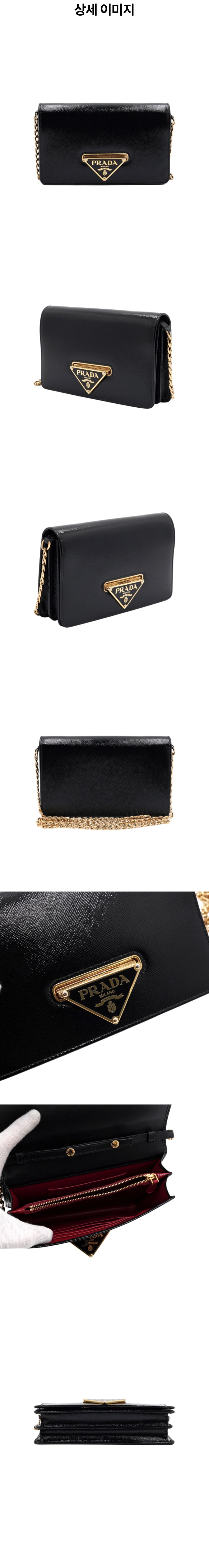 프라다 1BH133 블랙 페이턴트 트라이앵글 락 장식 금장 체인 숄더백 겸 크로스백 aa57209