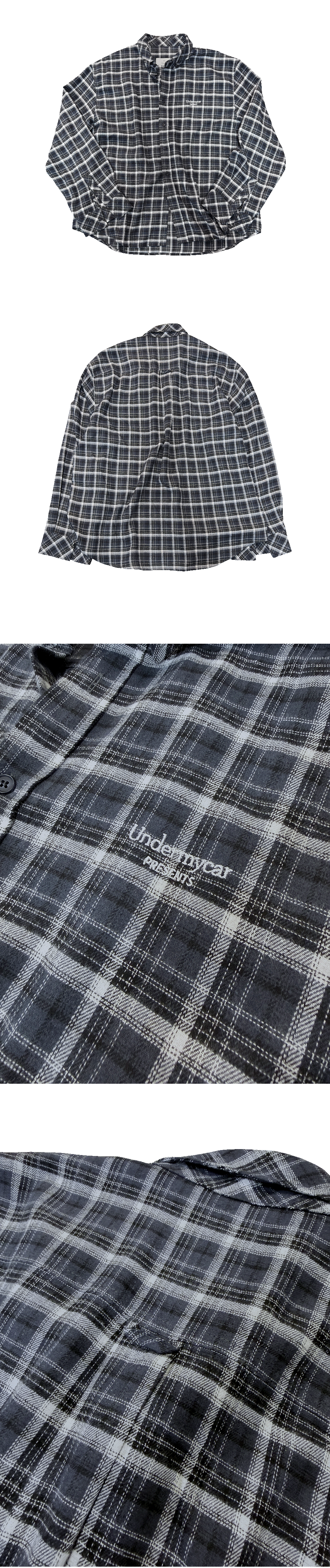 언더마이카 무.155 클래식 로고 베이직 롱 슬리브 플란넬 셔츠 네이비 화이트