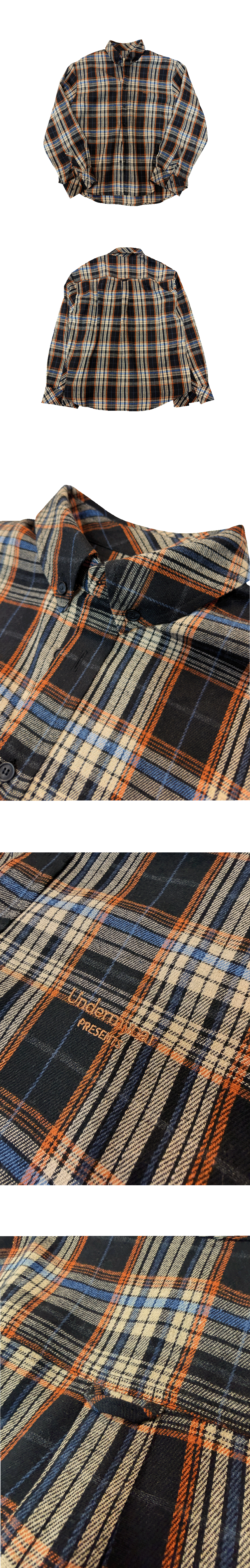언더마이카 무.153 클래식 로고 베이직 롱 슬리브 플란넬 셔츠 블랙 오렌지