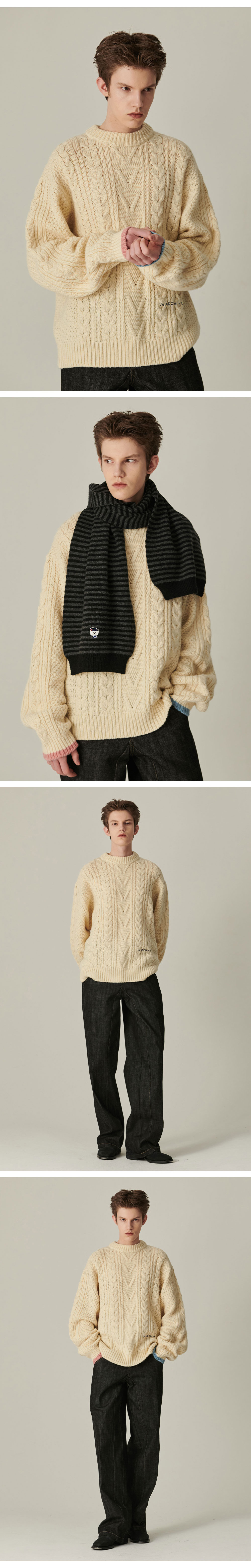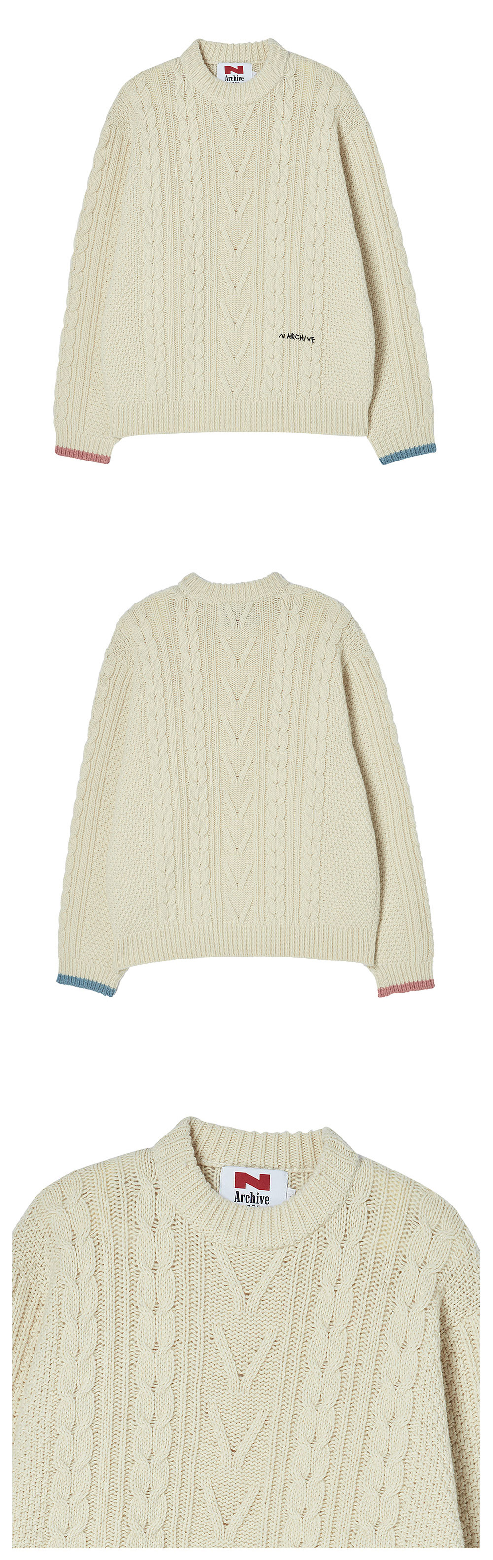 엔 아카이브 호크니 컬러 팔레트 피셔맨 울 니트 아이보리