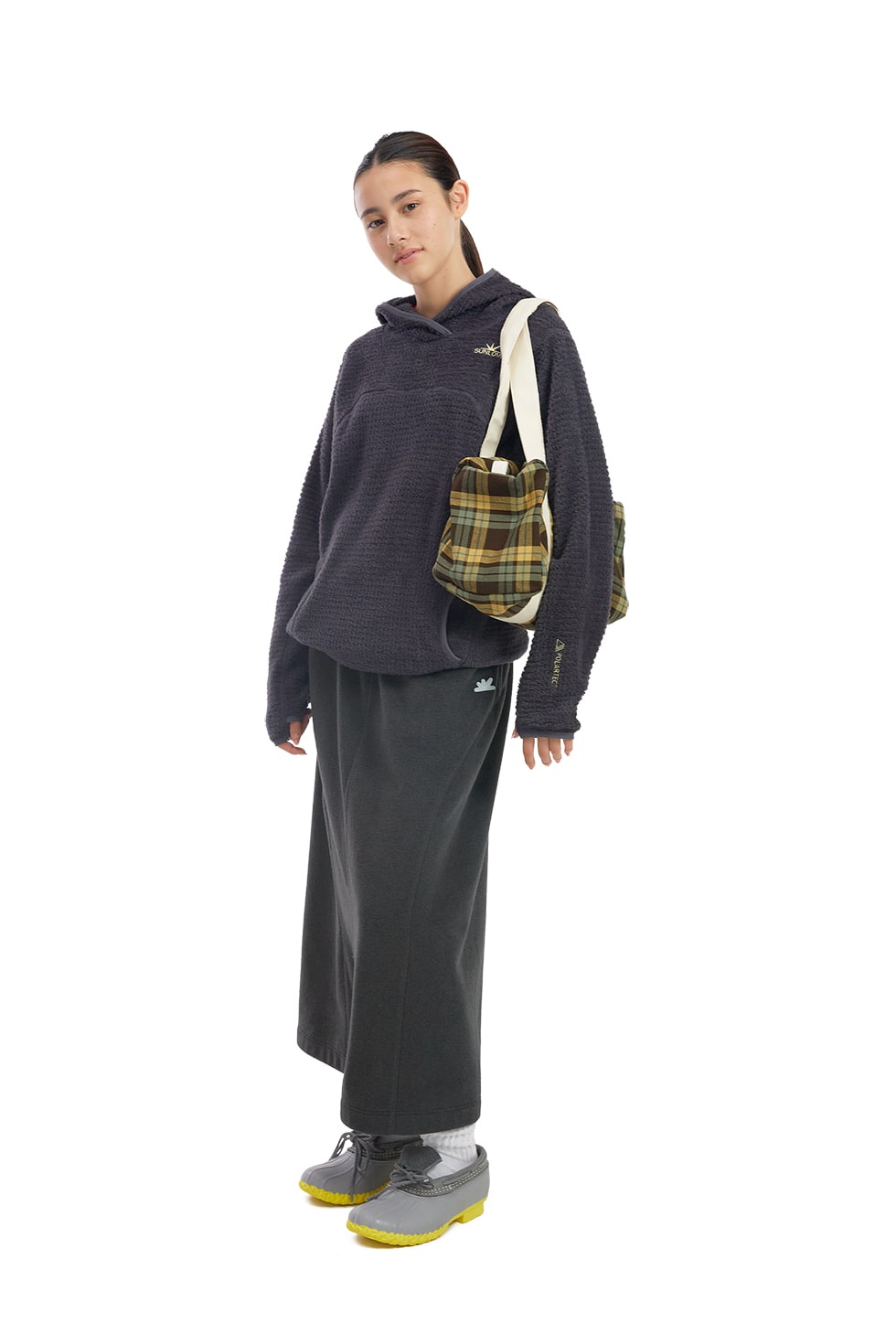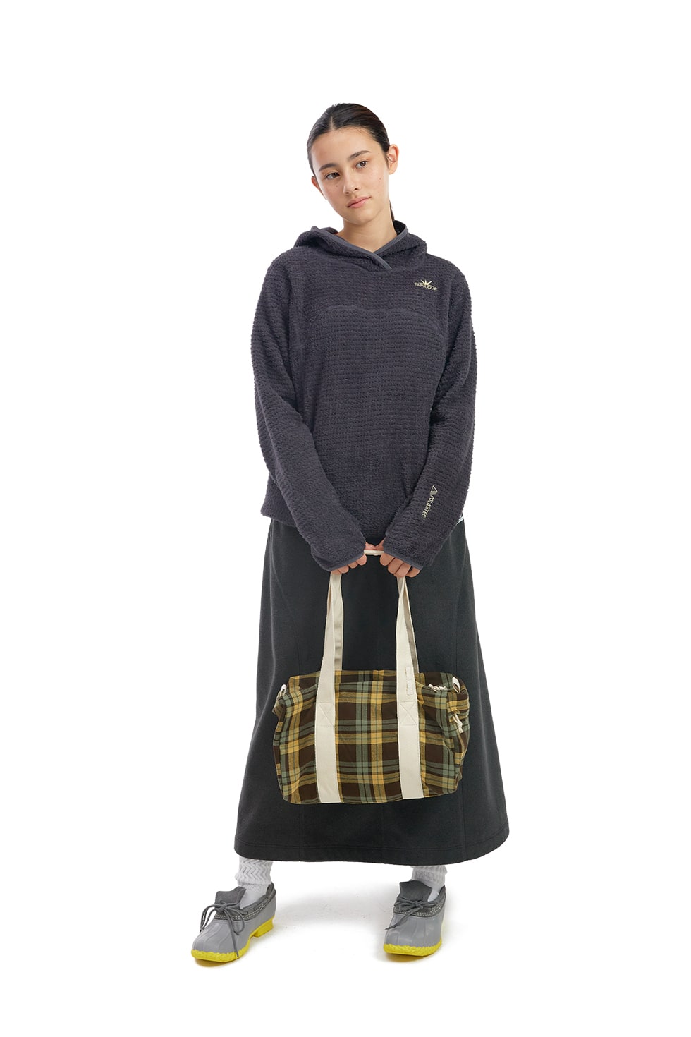 · 플란넬 마이크로 더플백 · 플란넬 코튼 혼방 원단 사용 · 사이드 지퍼 포켓 · 사이드 포켓 안감에 배색 원단 적용 · 키링 등을 걸수 있는 루프 디테일 적용 · 데이브레이크 심볼 라벨 100% Cotton Made in China Female - Small/165cm