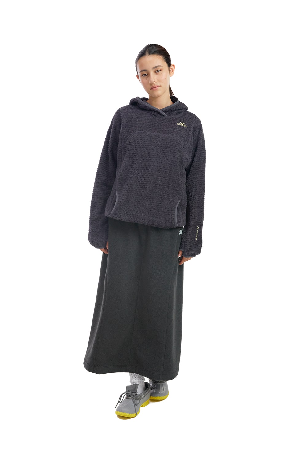 · 플리스 롱 스커트 · 안쪽 기모 처리된 플리스 원단 · 보온성, 신축성 우수 · 활동성을 고려하여 설계된 절개 라인 · 허리에 밴드, 스트랩으로 조절 가능 · 앞판 사이드 포켓 · 데이브레이크 심볼 고무 라벨 100% Polyester Made in Vietnam Female - Small/165cm