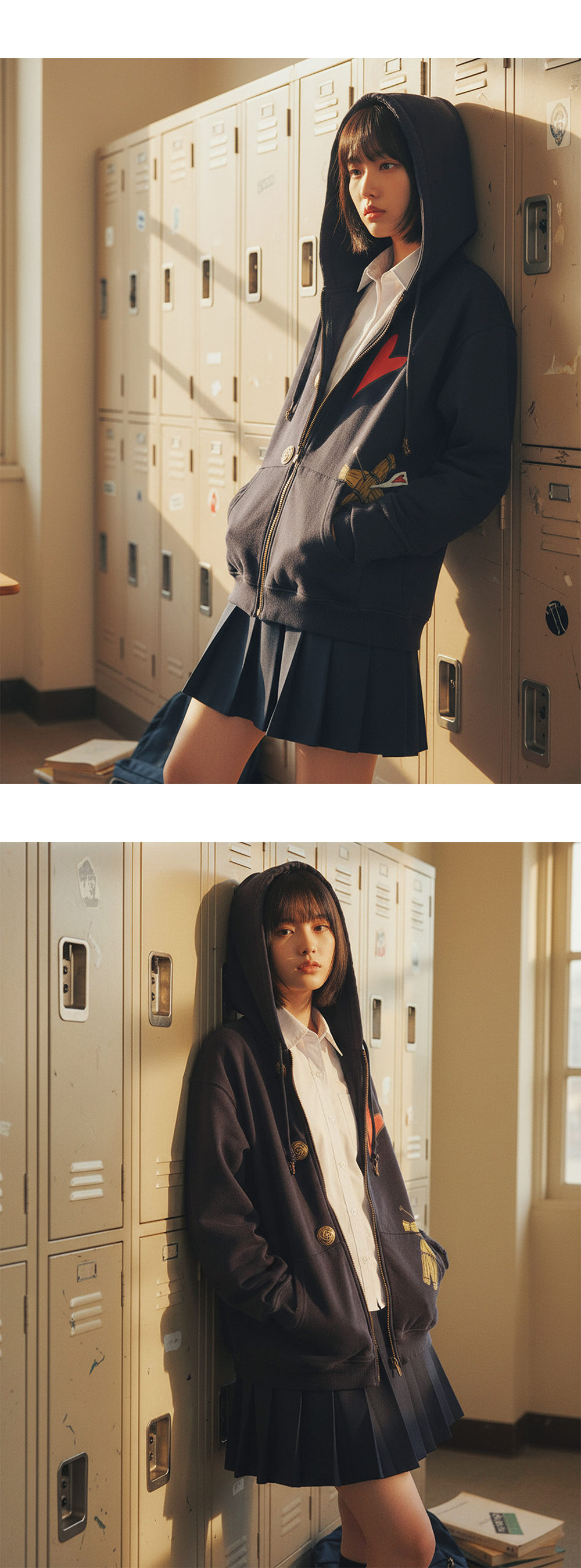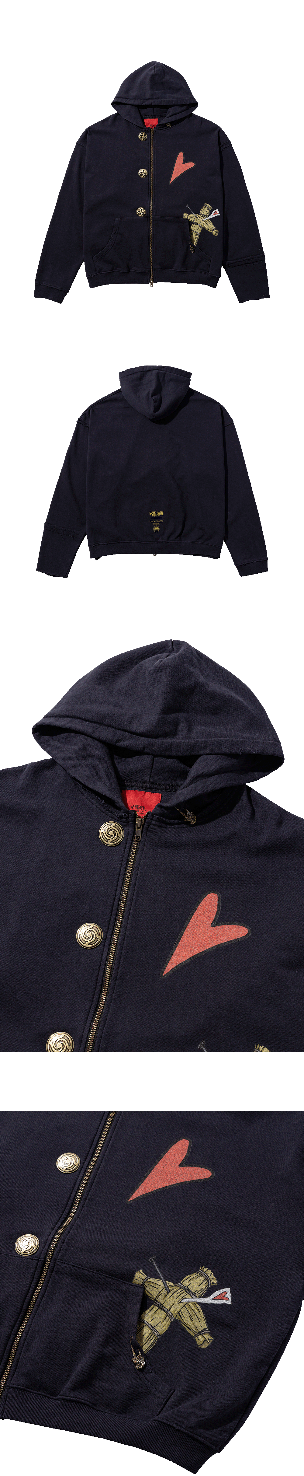 ✧ AI로 제작된 콘텐츠가 포함되었습니다 쿠기사키 노바라의 대표적인 시그니처 심볼을 언더마이카 스타일로 재해석하여 디자인된 후드집업입니다.