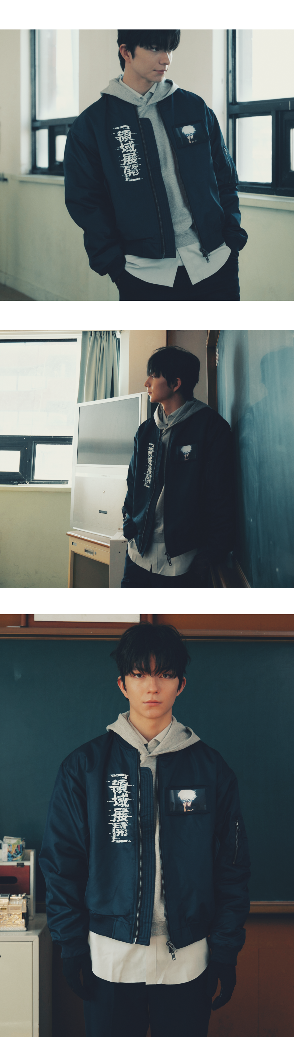 주술회전 언더마이카 고죠 사토루 그래픽 패치 MA-1 네이비