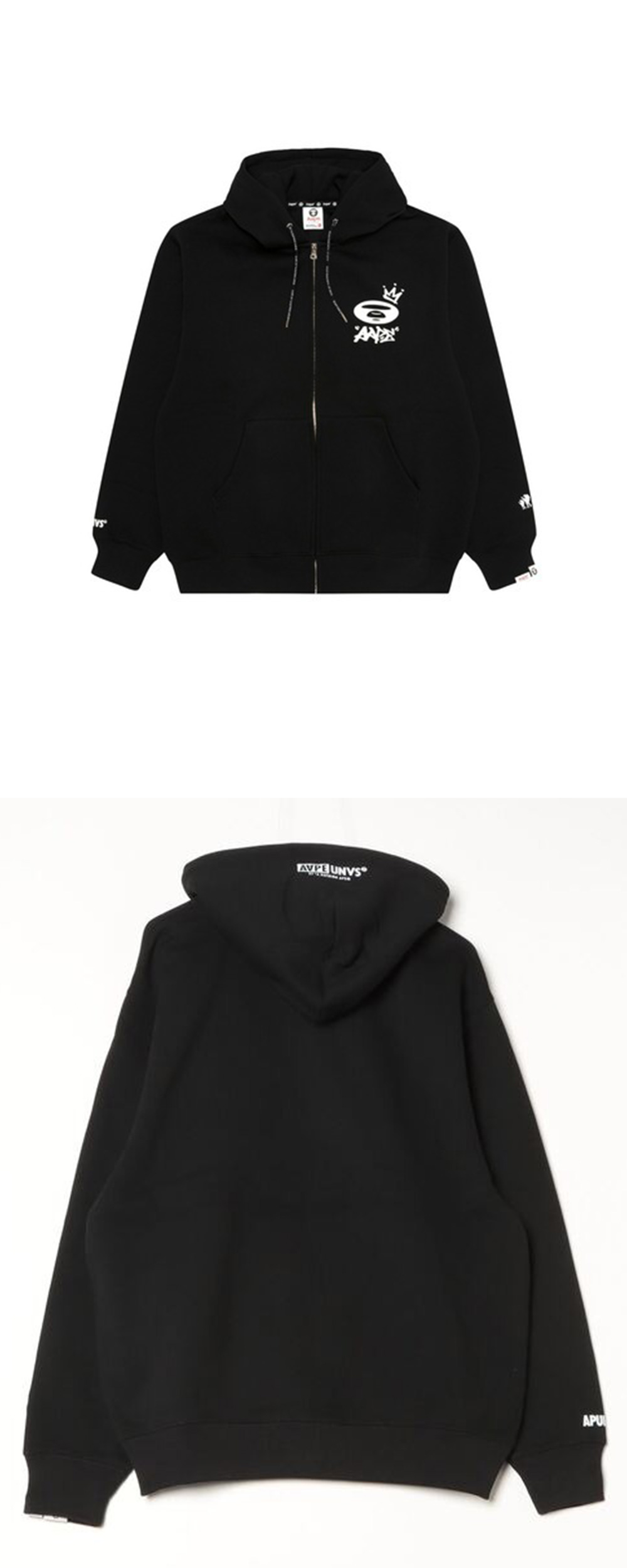 에이프 베이직 집업 스웨터 블랙입니다. - AAPE의 UNIVERSE 시리즈 - 전면 AAPE 그래픽이 포인트인 집업 후디 - 안감 기모 처리로 따뜻하고 포근한 착용감 - 전면 지퍼 여밈과 캥거루 포켓 - 브랜드 로고 후드 스트링 디테일 - 데일리·스트릿 룩까지 폭넓게 활용 가능
