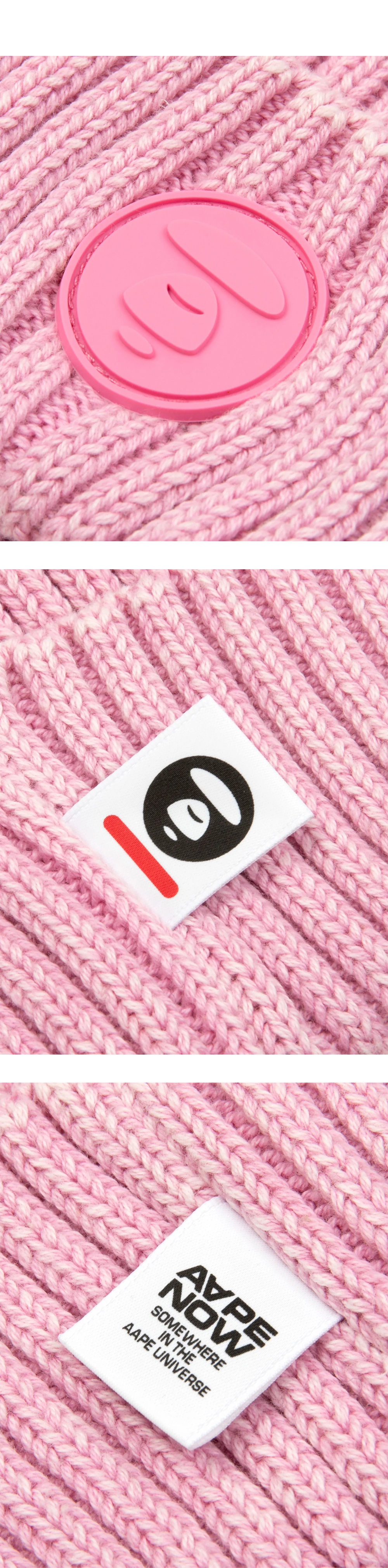 에이프 나우 햇 핑크입니다. - 세련된 골지 니트 소재 - 시그니처 문페이스 로고 패치 - 롤드 브림