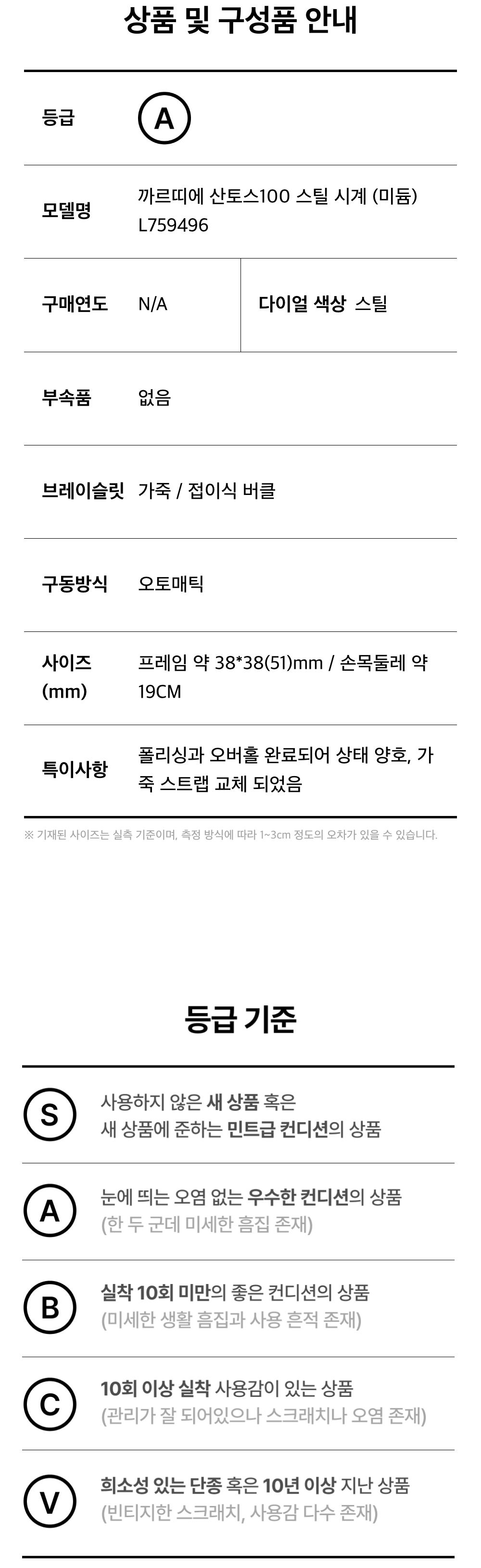 까르띠에 산토스100 스틸 시계 (미듐) L759496