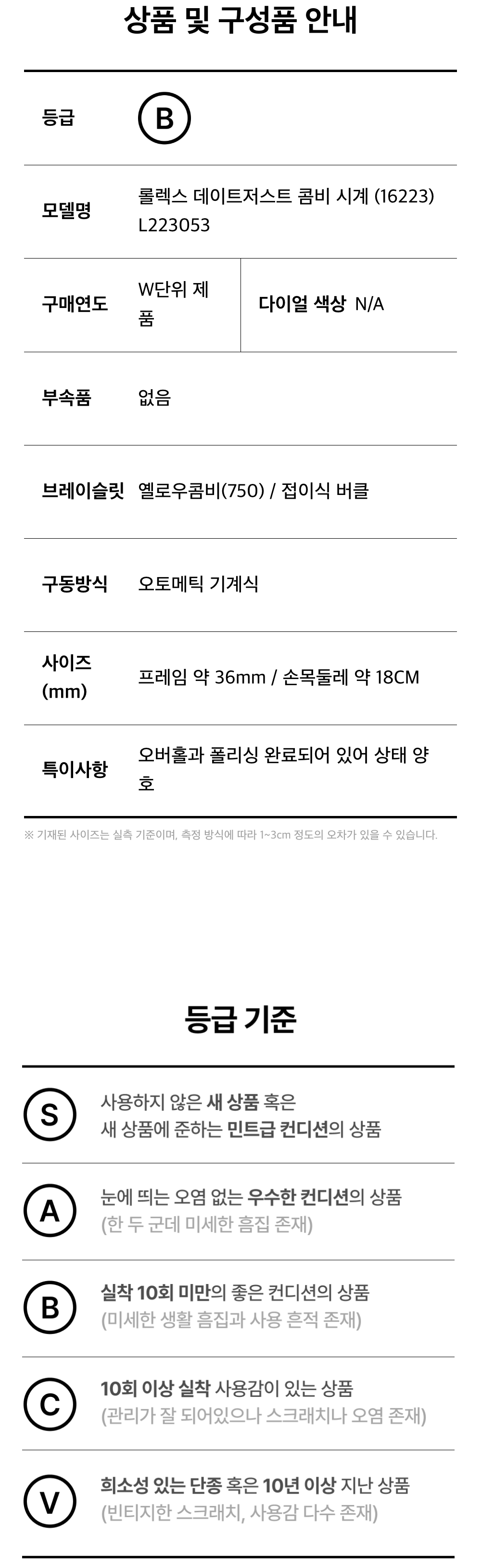 롤렉스 데이트저스트 콤비 시계 (16223) L223053