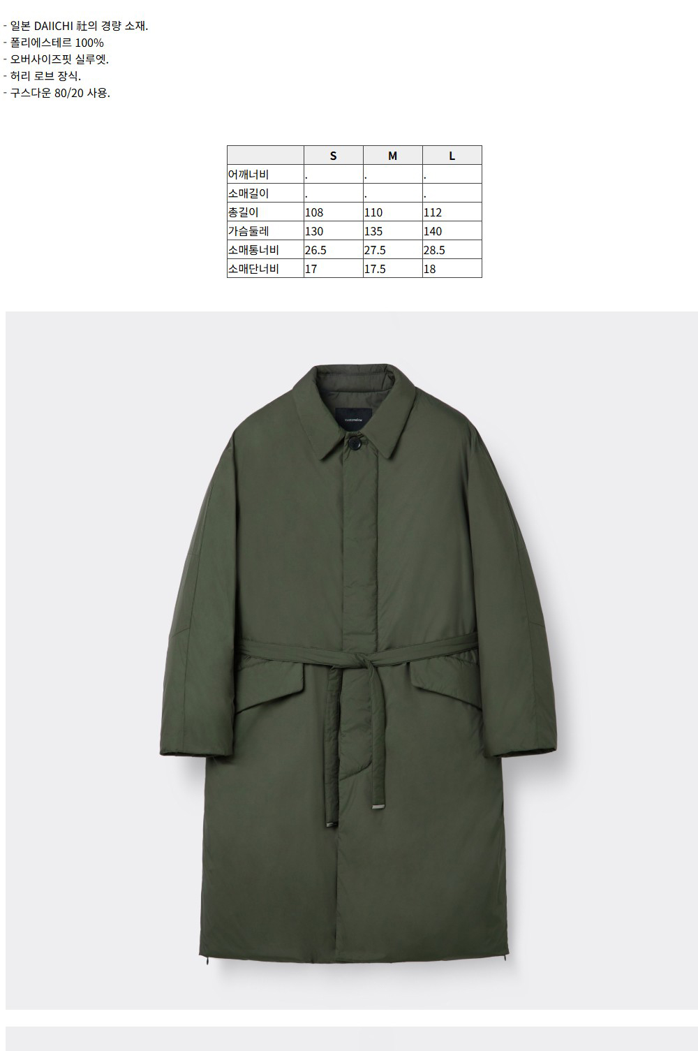 커스텀멜로우 로브 다운 코트 카키