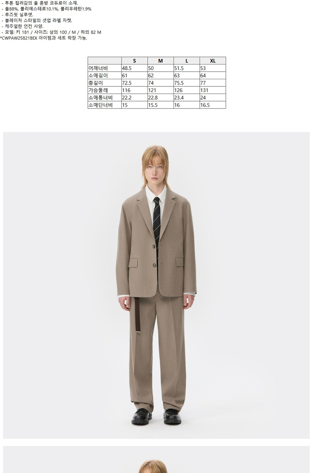 커스텀멜로우 루즈핏 코듀로이 셋업 재킷 베이지