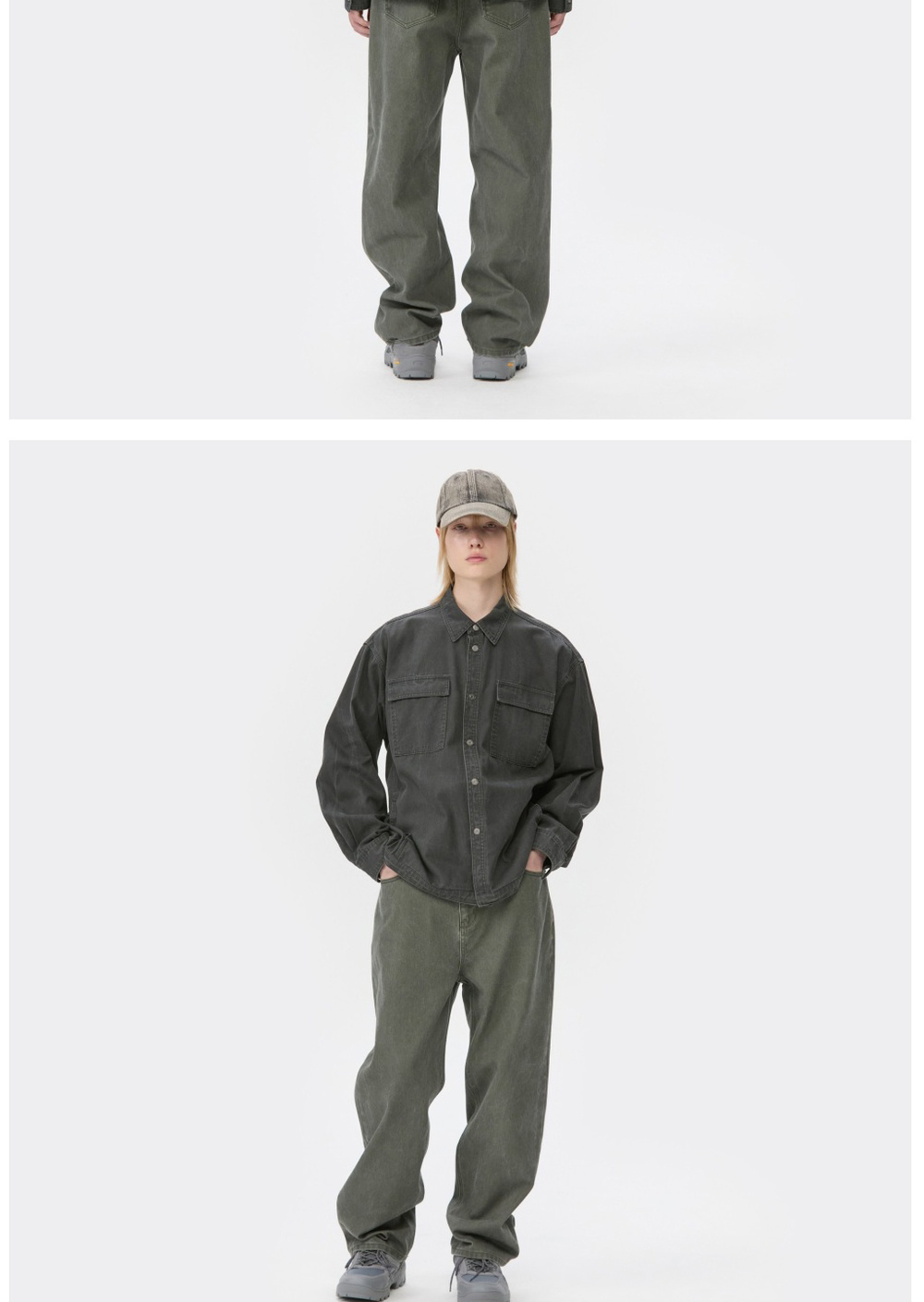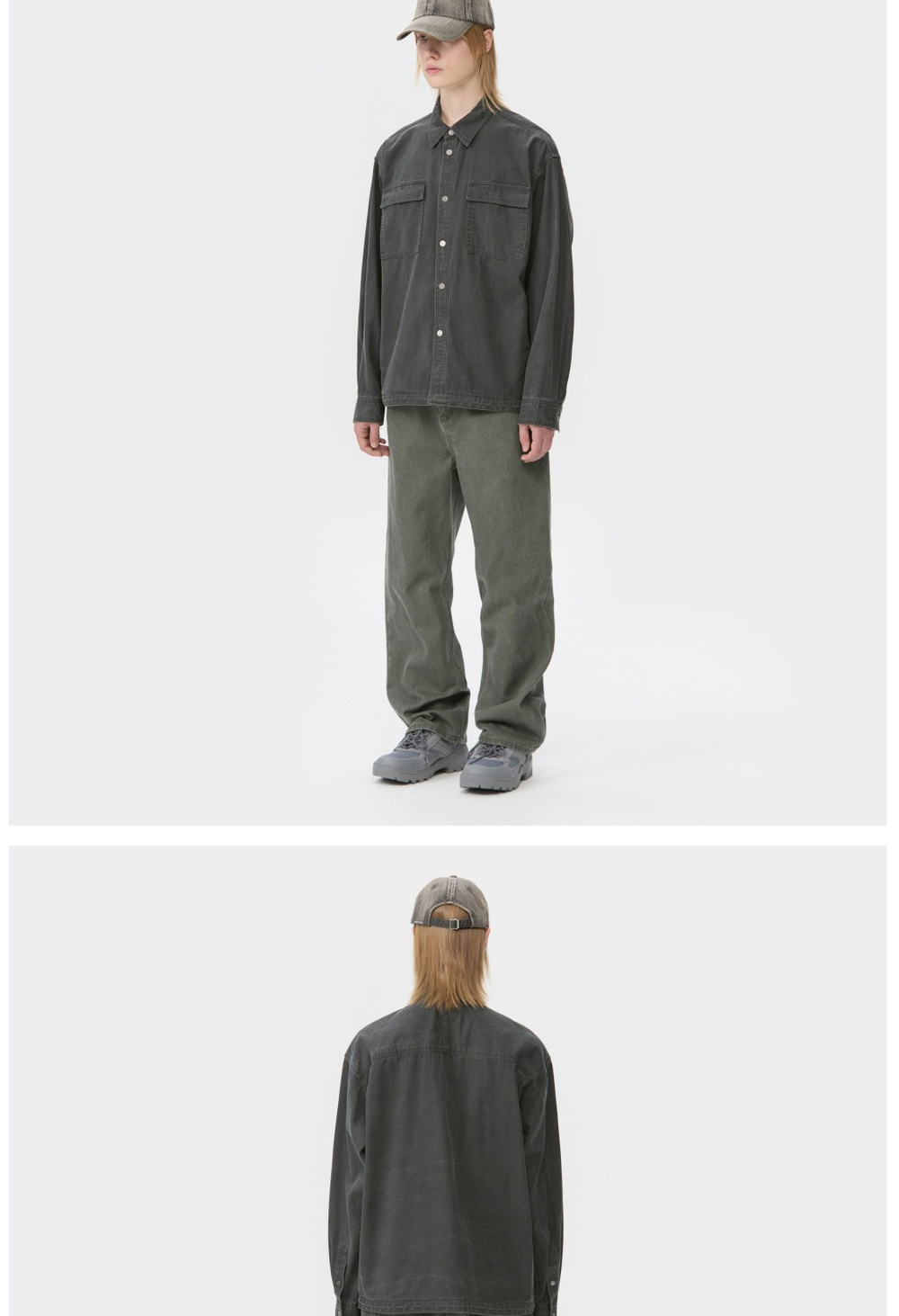 커스텀멜로우 더블 포켓 데님 셔츠 다크 그레이