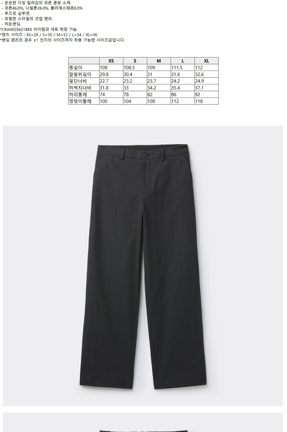 커스텀멜로우 루즈핏 코튼 셋업 팬츠 블랙