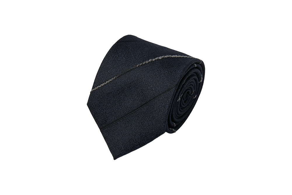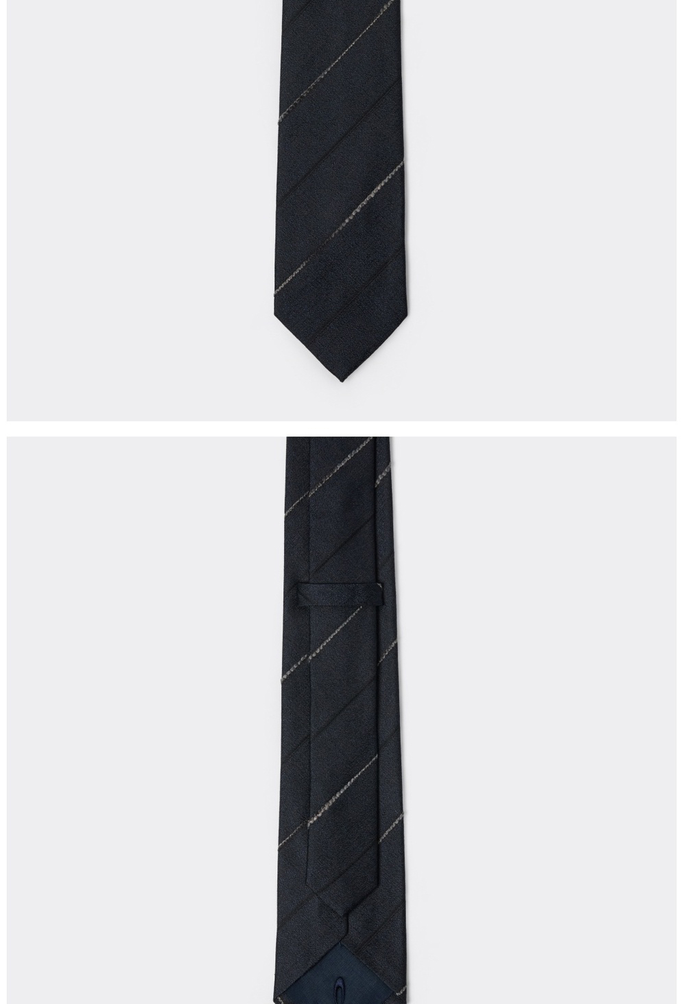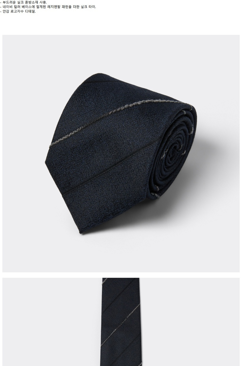 커스텀멜로우 실크 스트라이프 타이 네이비