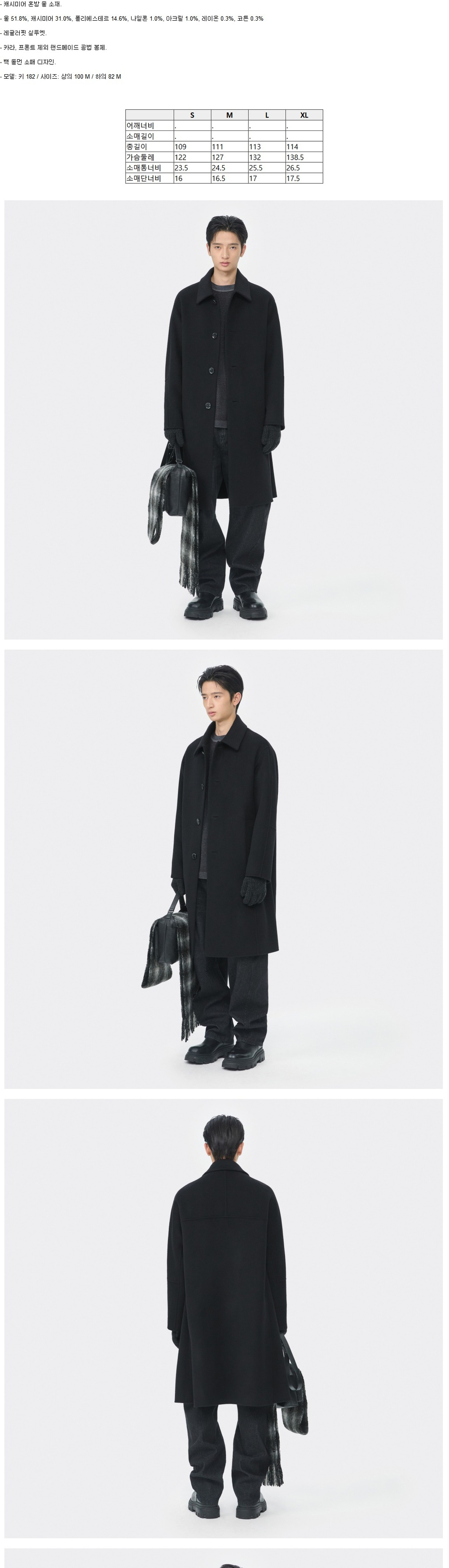 커스텀멜로우 캐시미어 블렌드 발마칸 코트 블랙