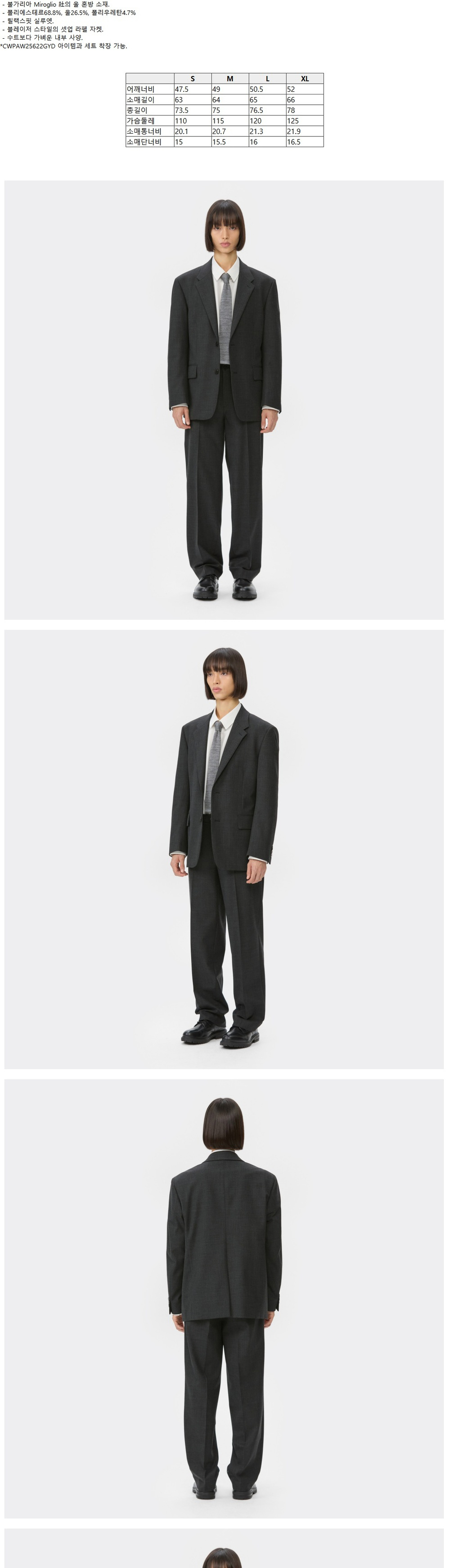 커스텀멜로우 릴랙스 핏 미로글리오 셋업 재킷 다크 그레이