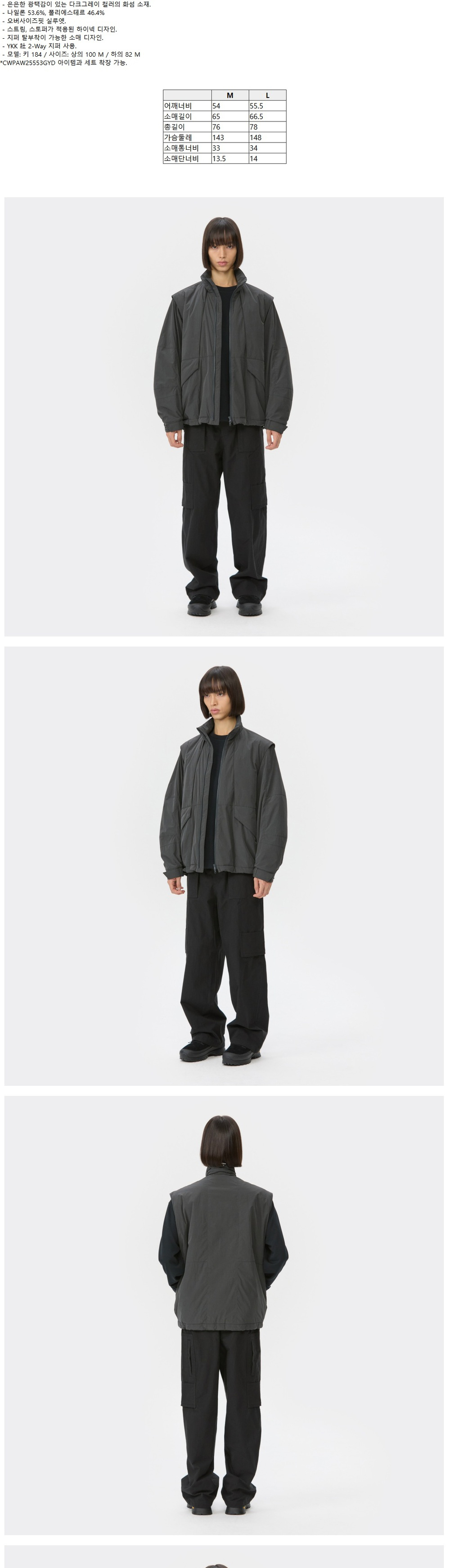 커스텀멜로우 디터쳐블 패딩 재킷 다크 그레이