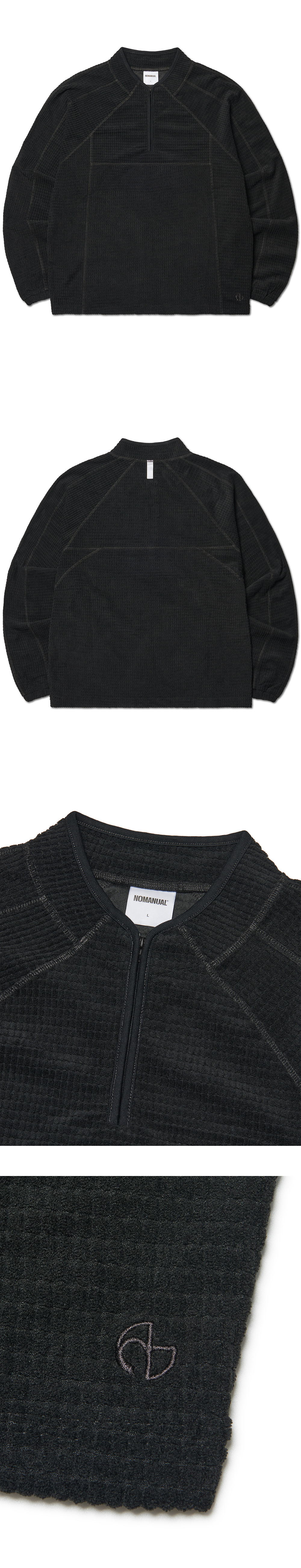 노매뉴얼 헤비 와플 하프 집업 블랙