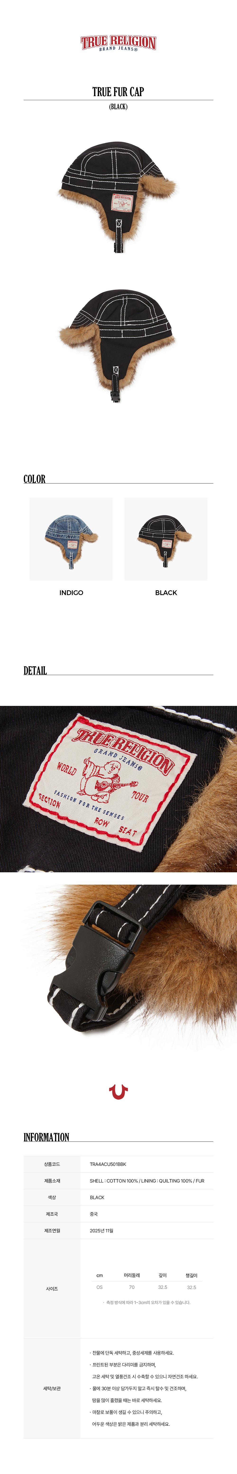 트루릴리젼 트루 퍼 캡_블랙