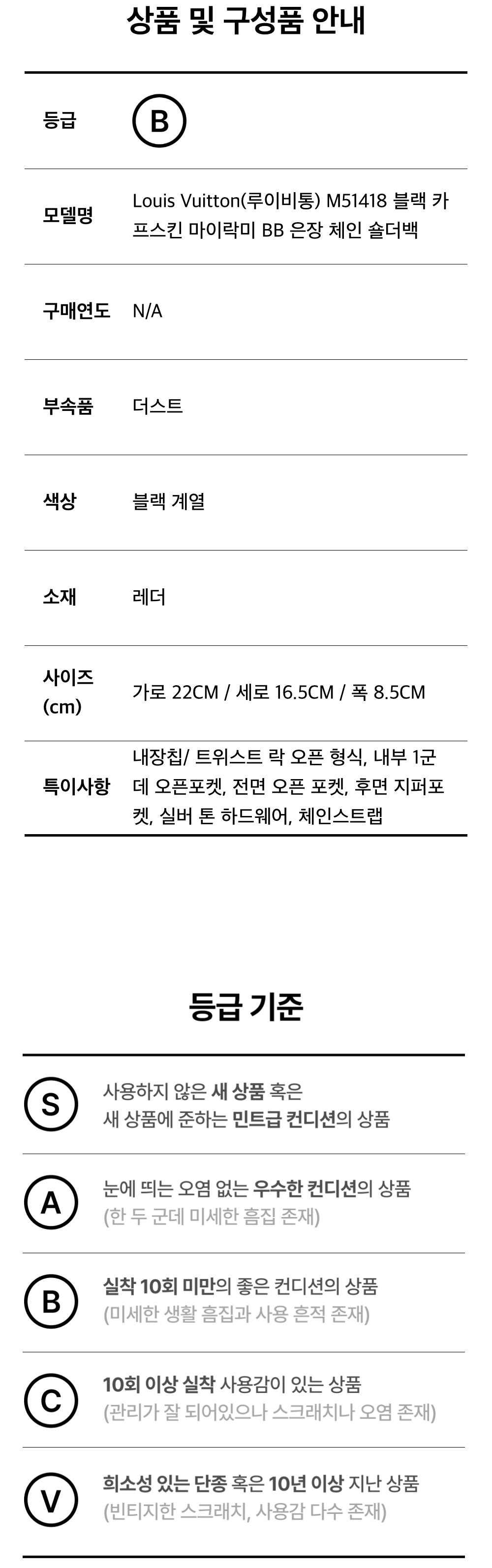 루이비통 M51418 블랙 카프스킨 마이락미 BB 은장 체인 숄더백