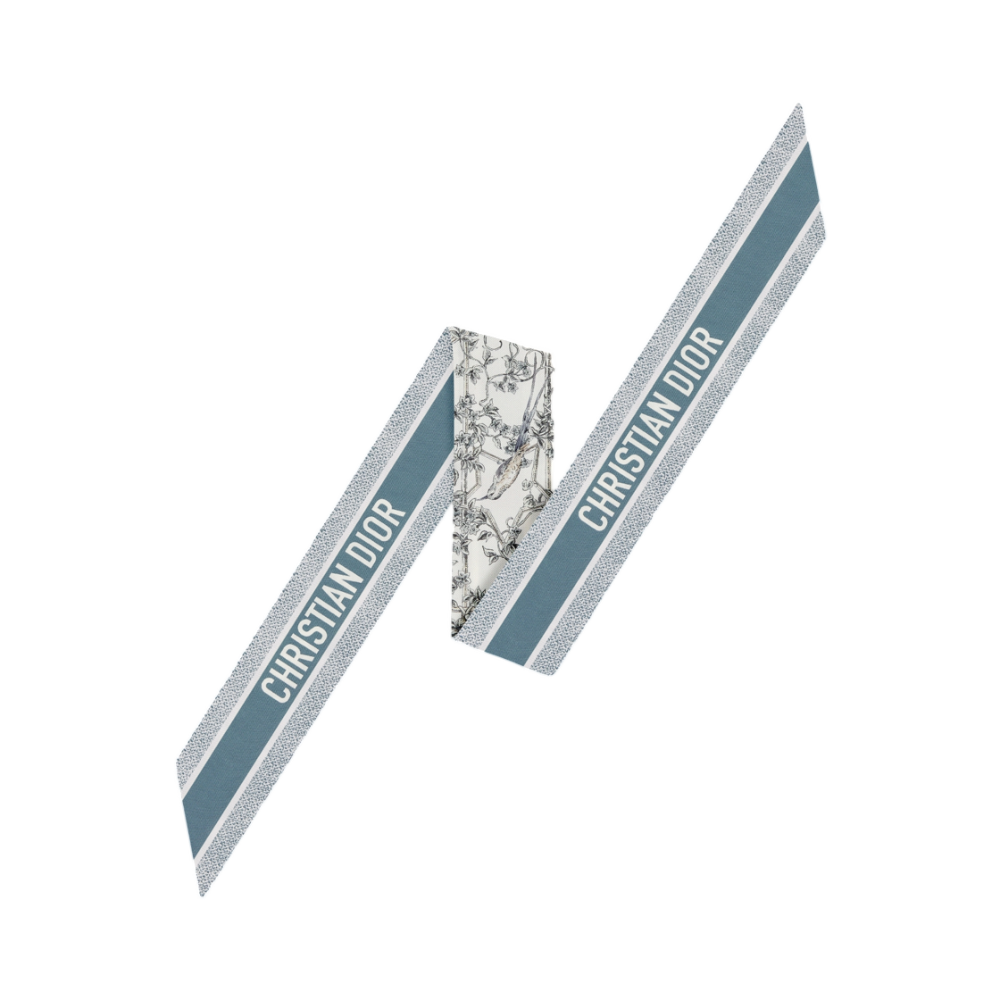 (W) 디올 자르뎅 데토일 미차 스카프 실크 트윌 화이트 블루