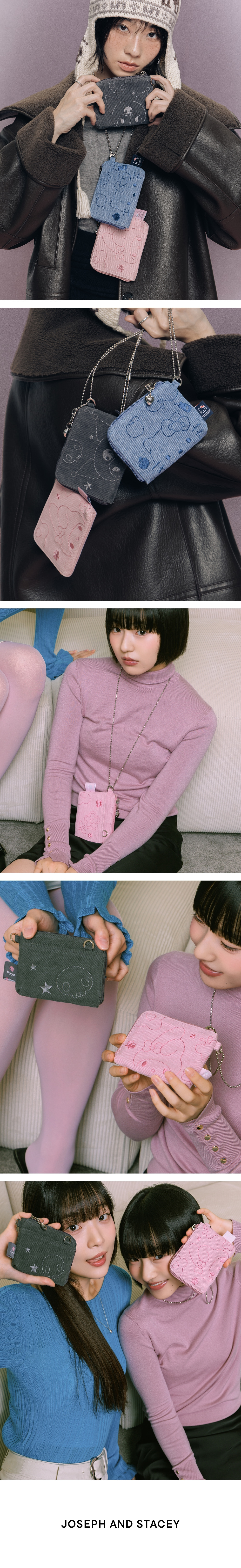 조셉앤스테이시 데님 키링 카드 월렛 쿠로미 워시드 차콜 위드 체인