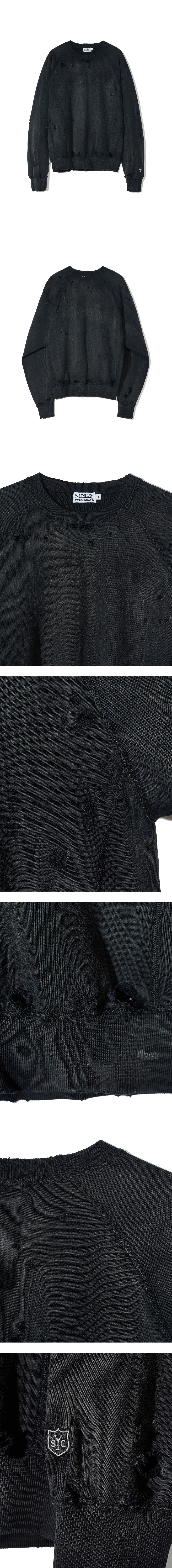 선데이세레머니 디스트레스 워시드 스웻 셔츠 - 블랙