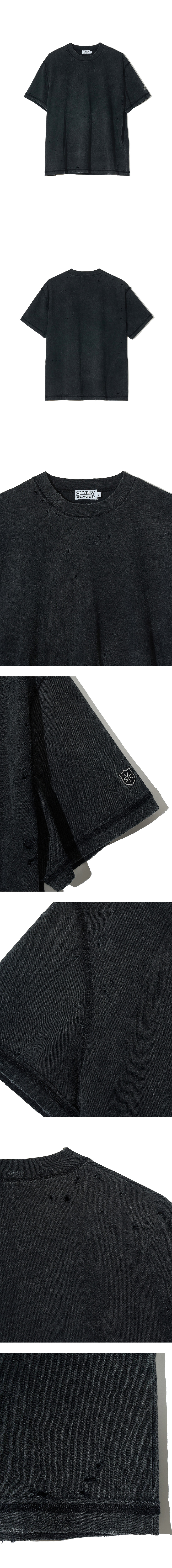 선데이세레머니 디스트레스 워시드 데미지 티 - 블랙