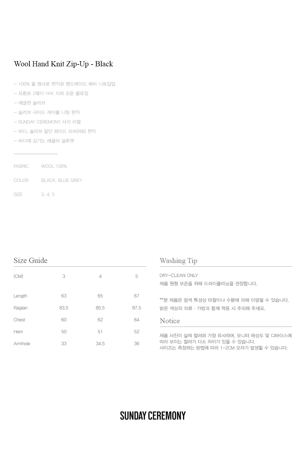 선데이세레머니 울 핸드 니트 집업 - 블랙