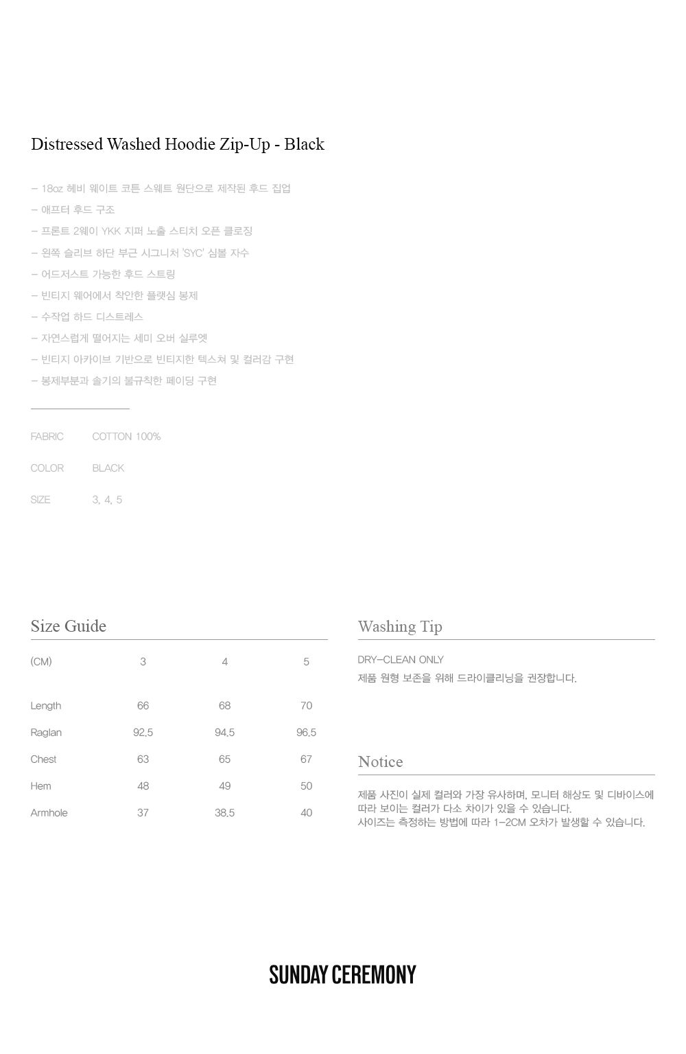 선데이세레머니 디스트레스 후드 집업 - 블랙