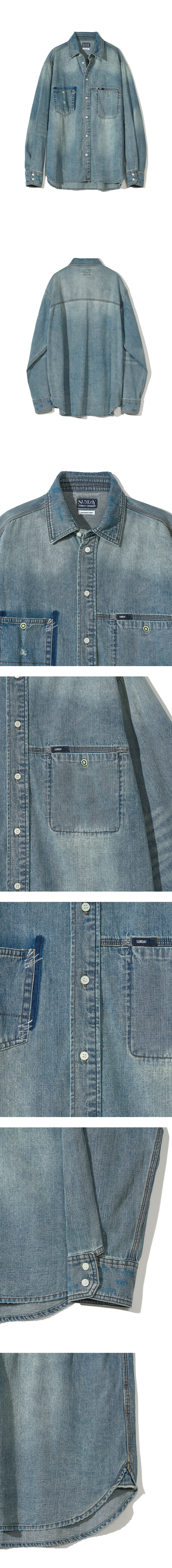 선데이세레머니 빈티지 워시드 재패니즈 데님 셔츠 - 미드 블루