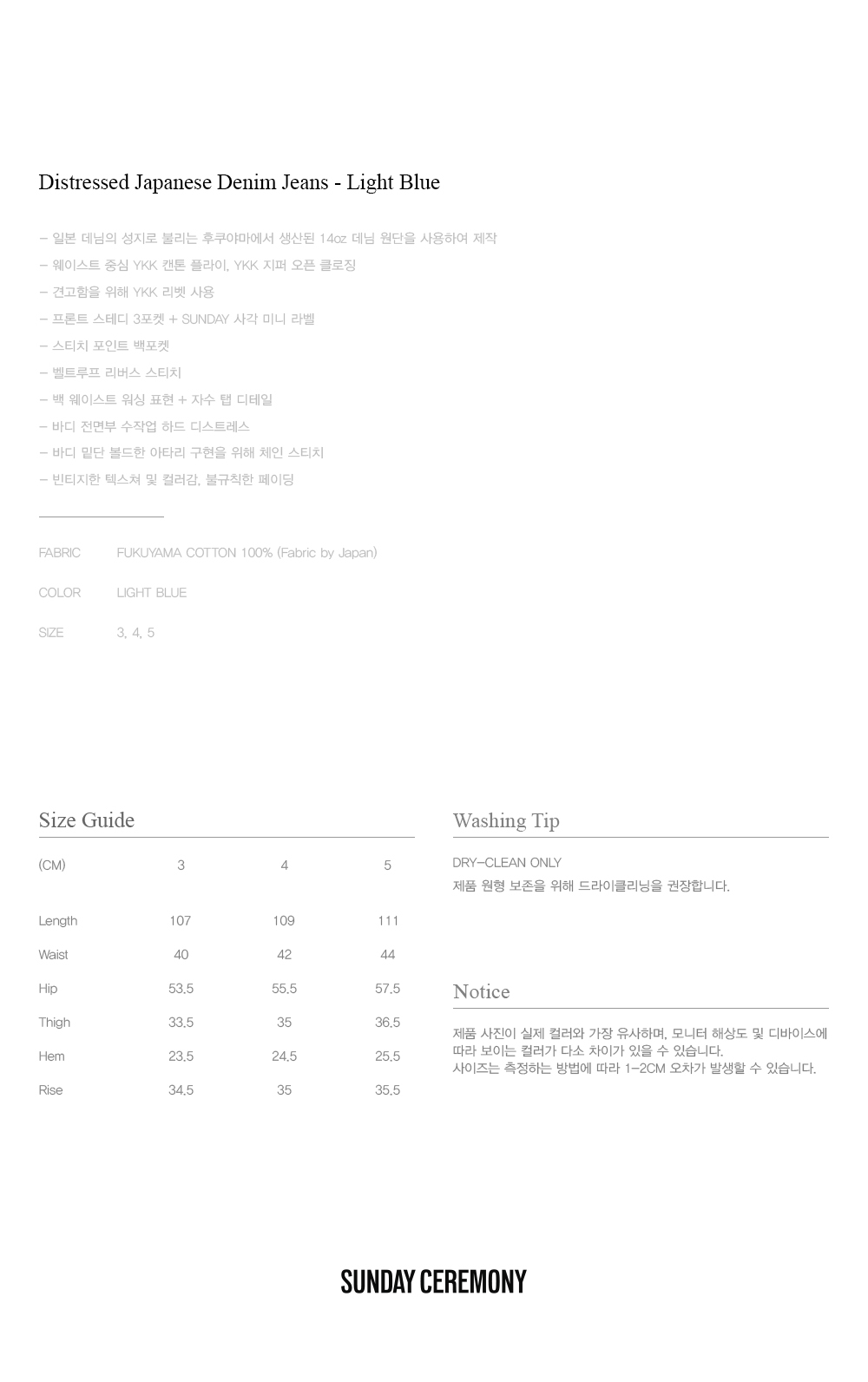 선데이세레머니 디스트로이드 재패니즈 데님 진 - 라이트 블루