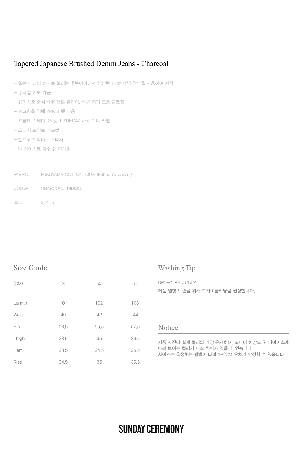 선데이세레머니 테이퍼드 재패니즈 브러쉬 데님 진 - 차콜