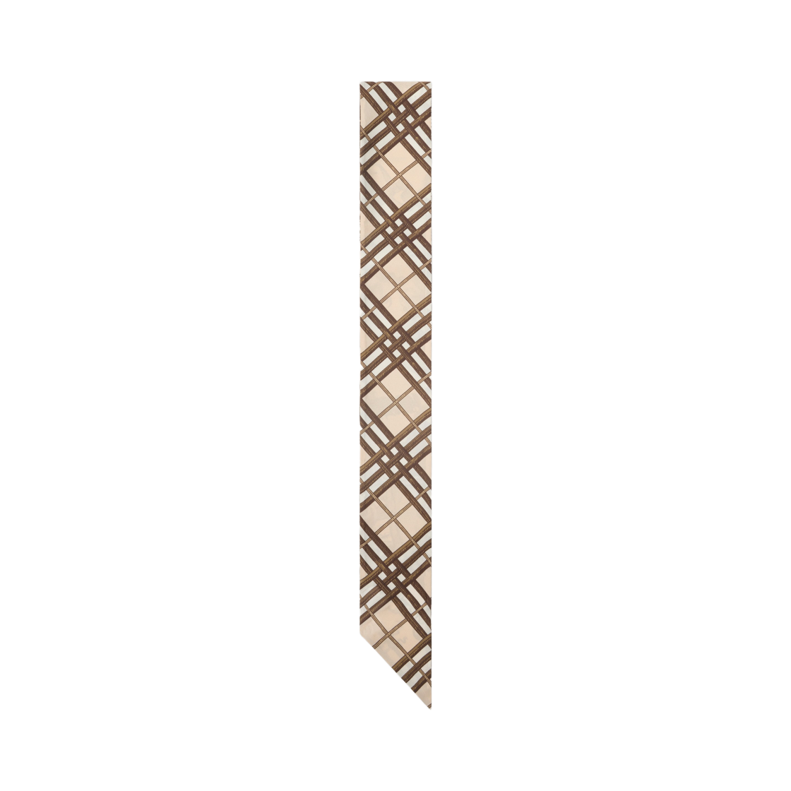 (W) Burberry Skinny Reversible Etched Knight Silk Scarf Taupe Beige