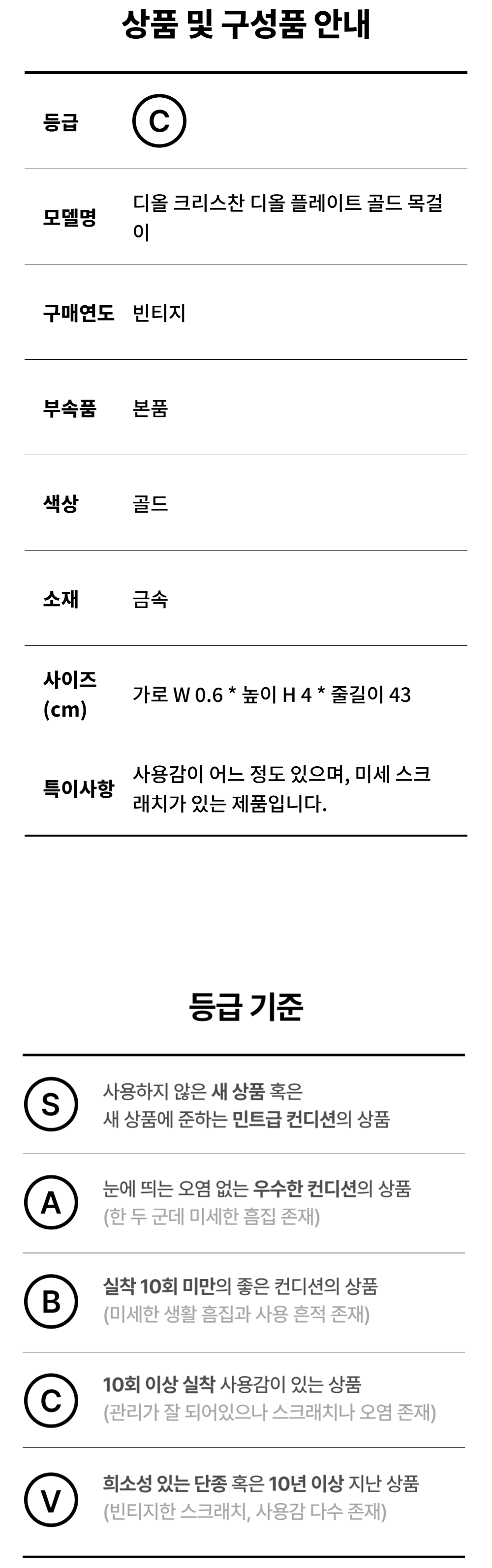 디올 크리스찬 에르메스 플레이트 골드 목걸이 A-B41058