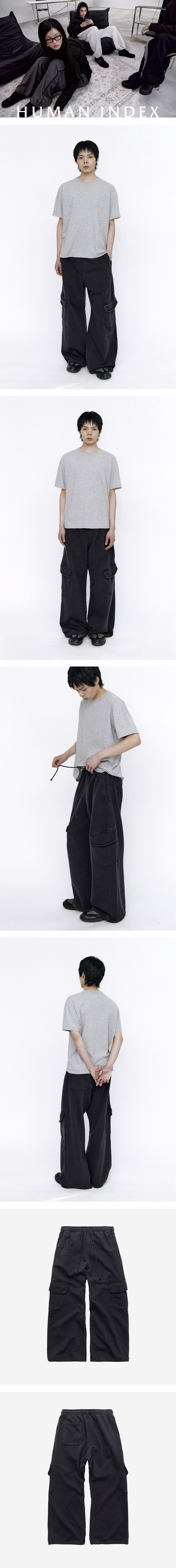 human cargo sweat pants - 이지하게 착용 가능한 카고 팬츠 - 와이드한 실루엣 - 가먼트 째로 워싱 - 전면 사선 플랩 포켓 - 후면 1포켓 *남성 모델 : 180cm / 마른 체형, 4사이즈 착용 *직전 차수 대비, 유사한 컬러감, 유사한 피팅감으로 제작되었습니다.