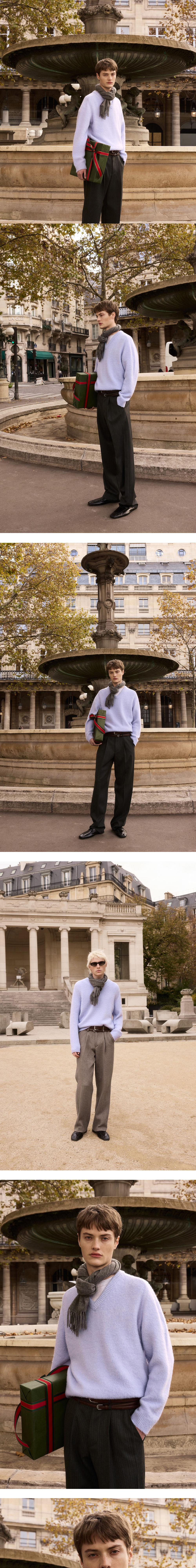 - 스탠다드 핏 - 퍼플 컬러 - V넥 실루엣 - 부클 텍스쳐