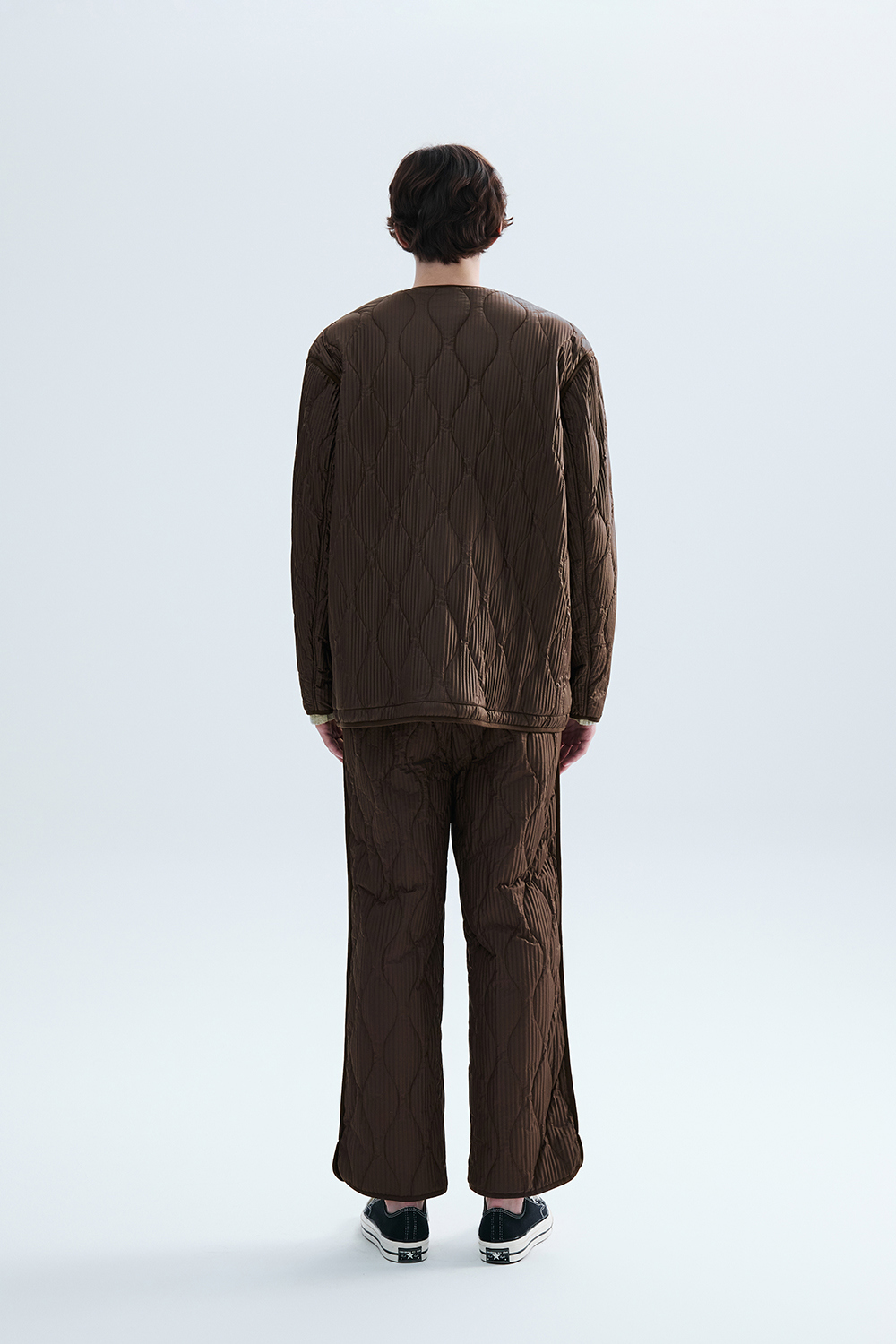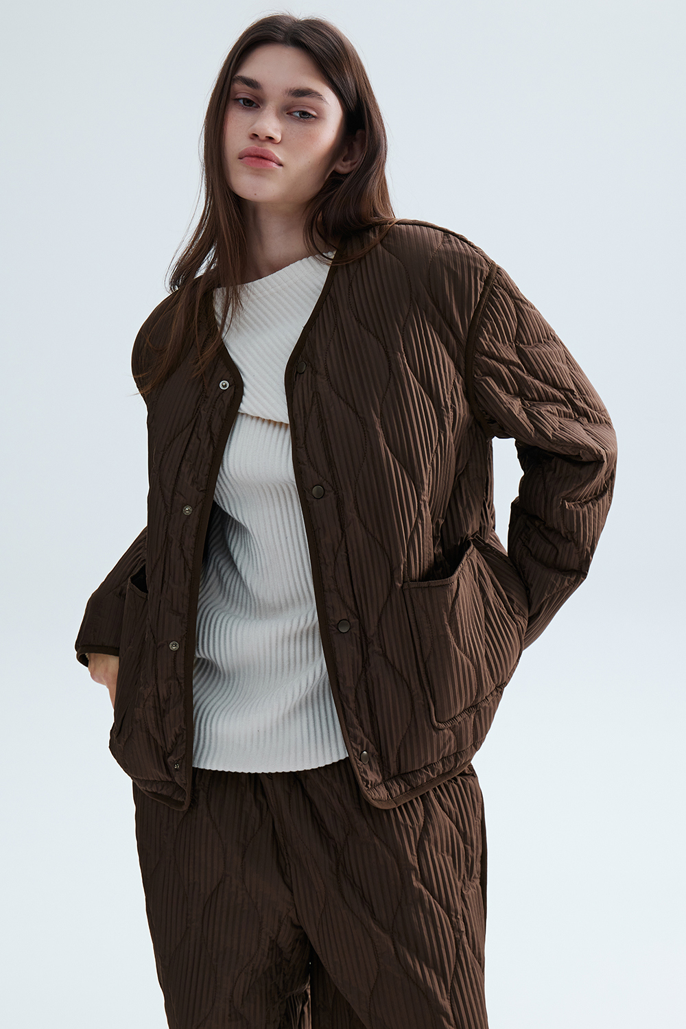 몽플리쎄 공용 물결 자수 퀼팅 누빔 플리츠 자켓 브라운