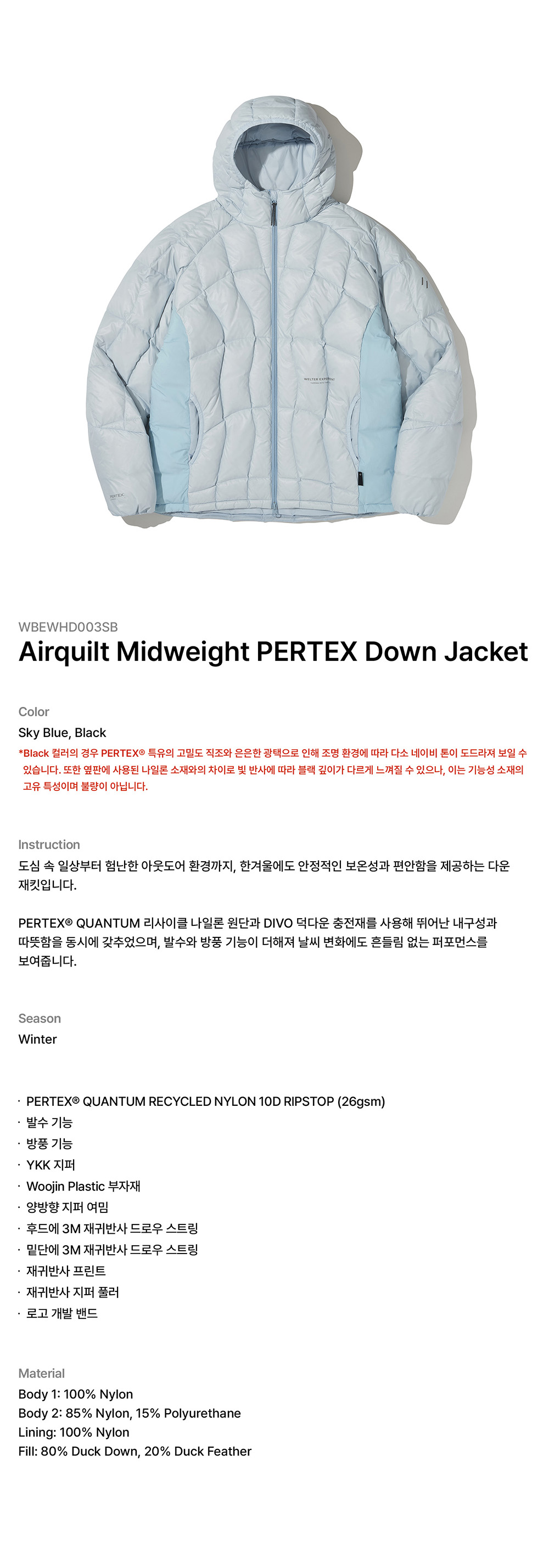 웰터 익스페리먼트 에어퀼트 미드웨이트 퍼텍스 다운 자켓 스카이 블루
