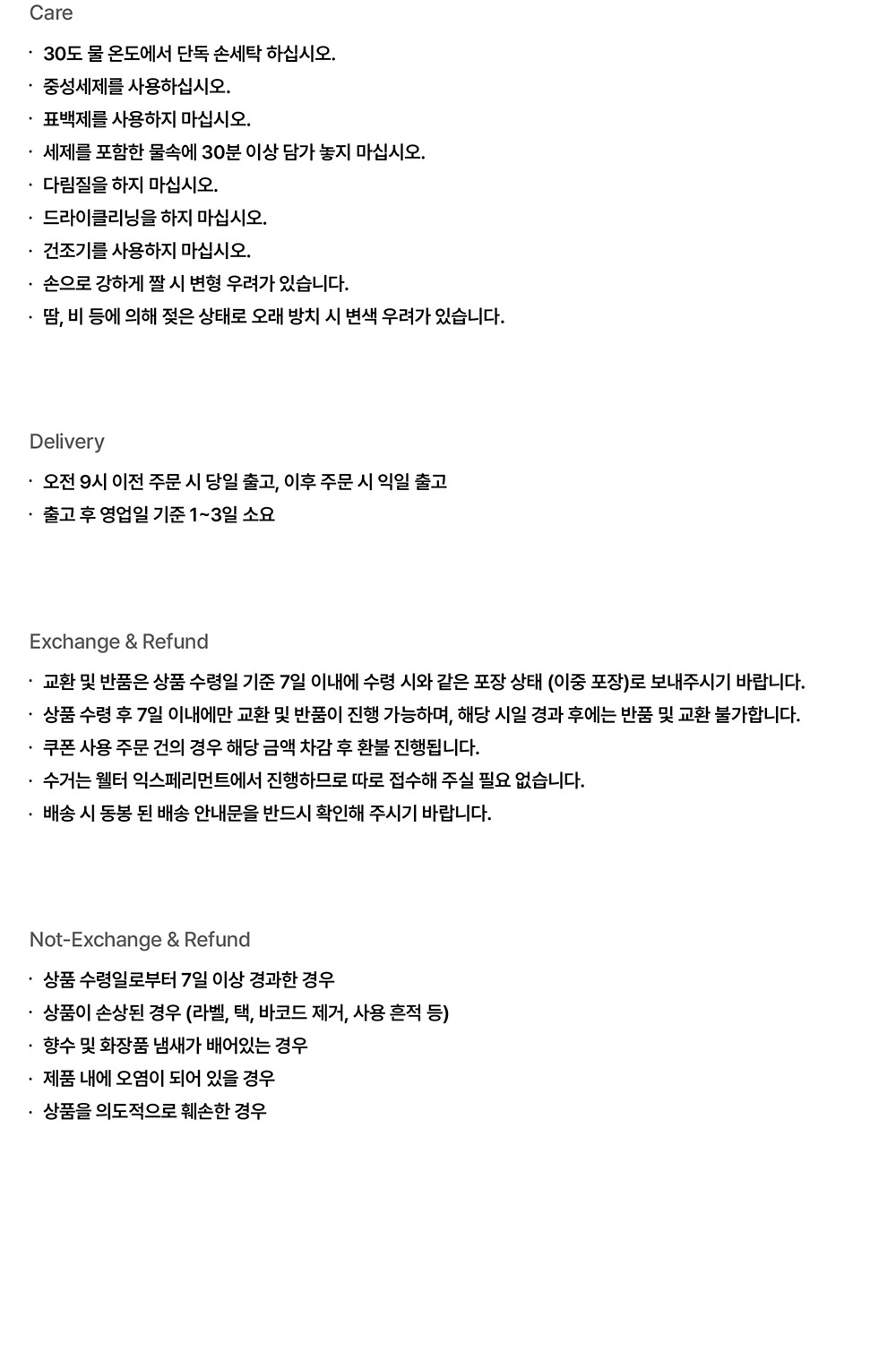 교환 및 반품 안내