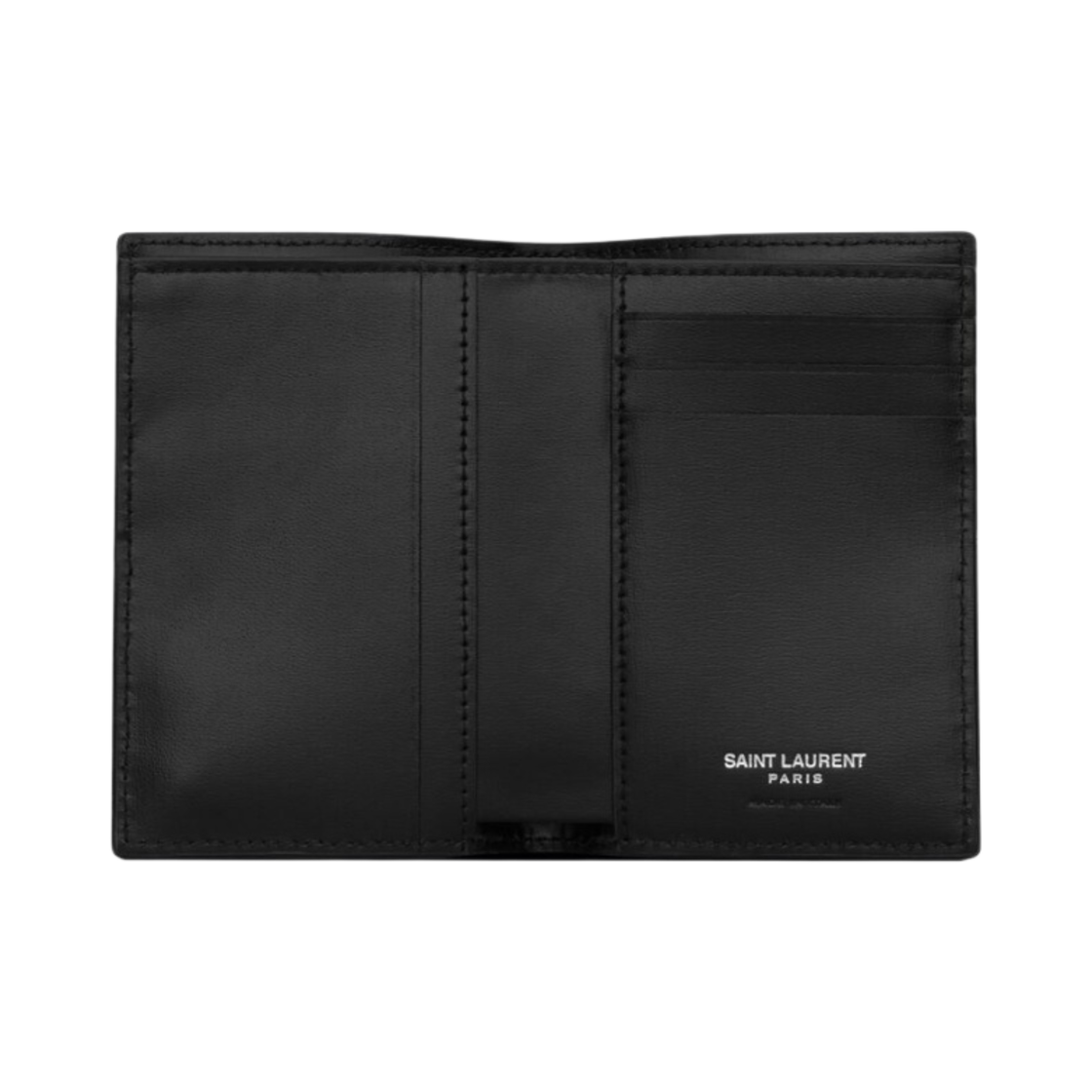Saint Laurent Tiny Cassandre Credit Card Wallet in Matte Leather Black