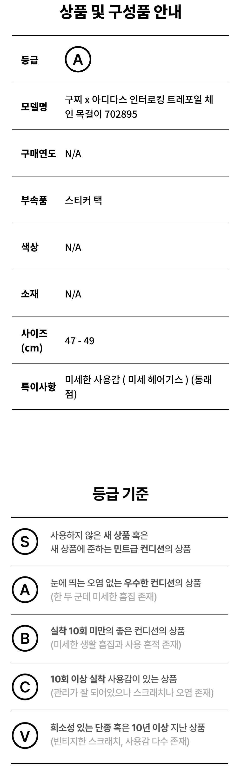 구찌 x 아디다스 인터로킹 트레포일 체인 목걸이 702895