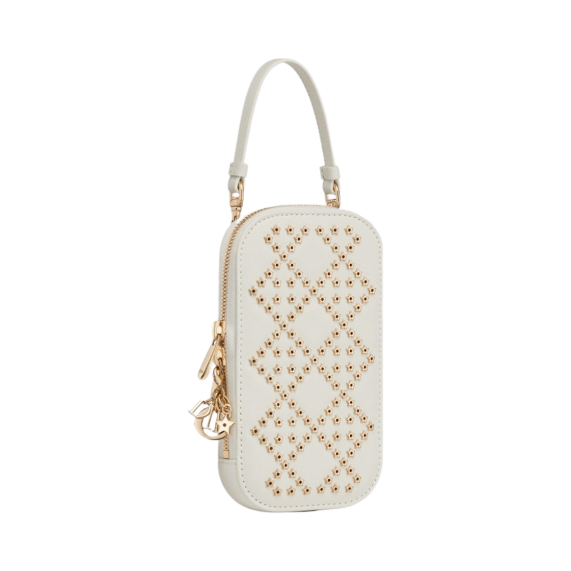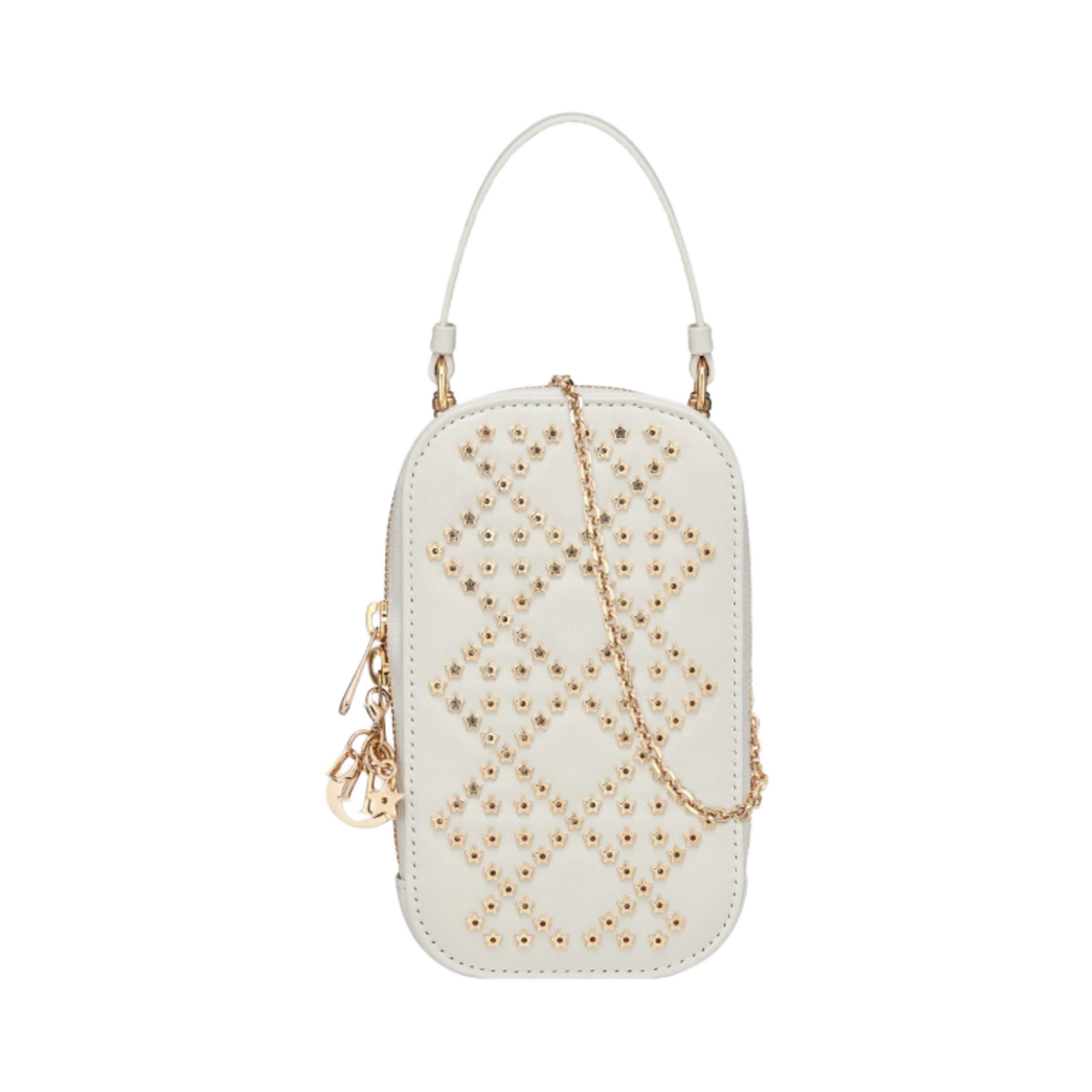 Dior Lady Phone Holder Cannage Lambskin with Star Motif Latte