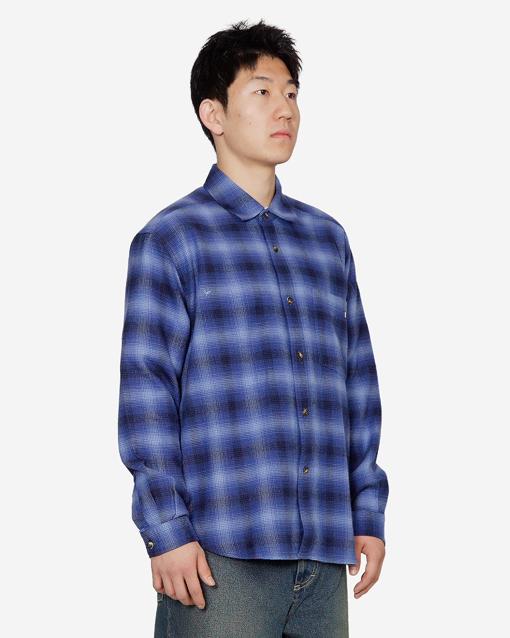 폴라스케이트 미첼 롱슬리브 쉐도우 체크 셔츠 블루