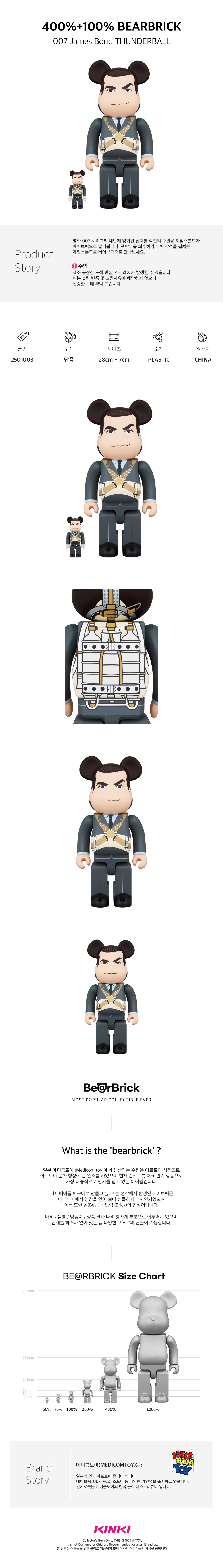 킨키로봇 400%+100% 베어브릭 007제임스본드 썬더볼 (2501003)