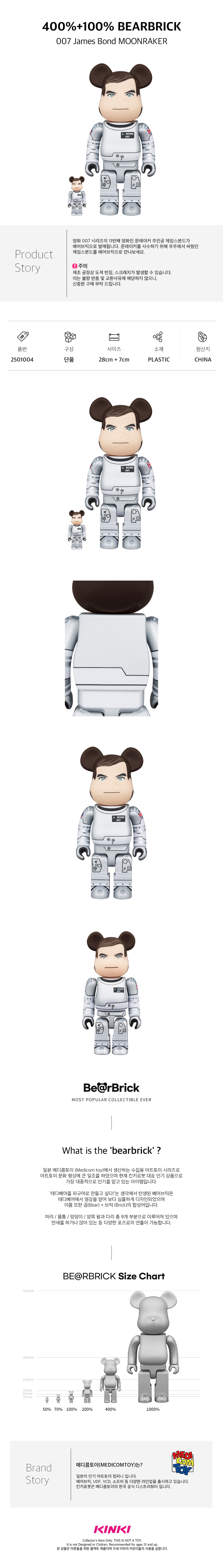 킨키로봇 400%+100% 베어브릭 007 제임스본드 문레이커 (2501004)