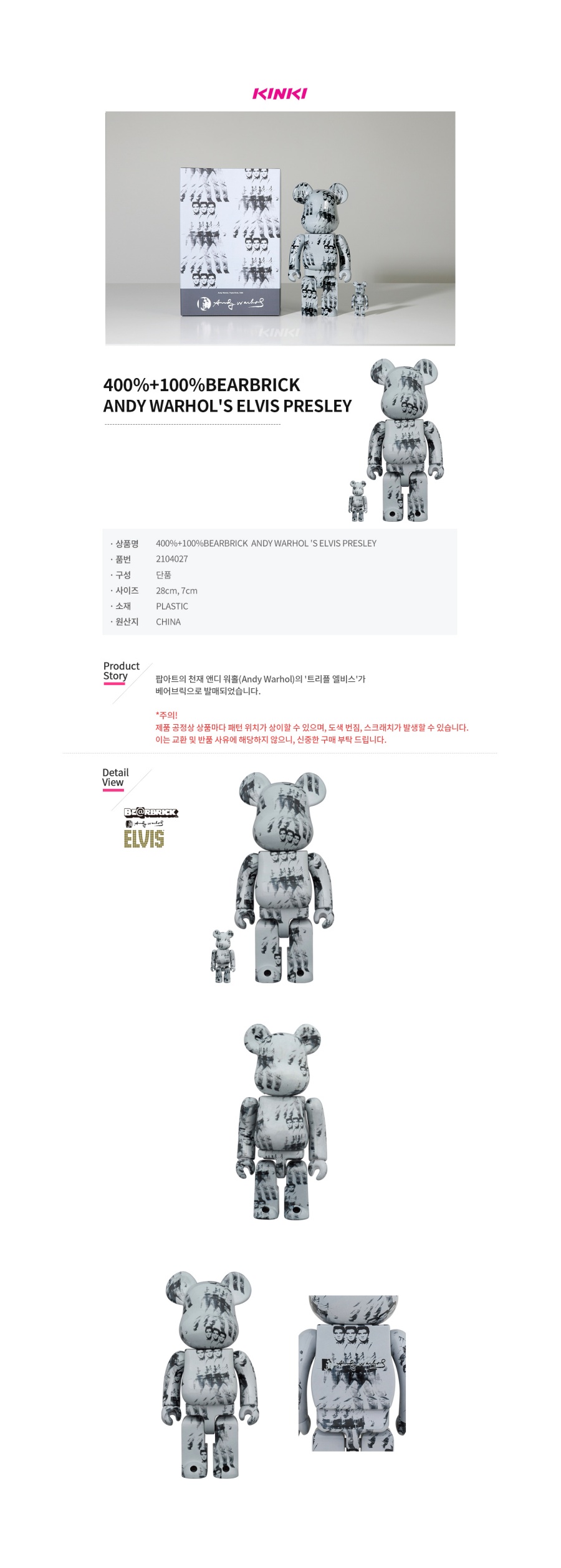 킨키로봇 400%+100%베어브릭 앤디워홀 엘비스 프레슬리 (2104027)