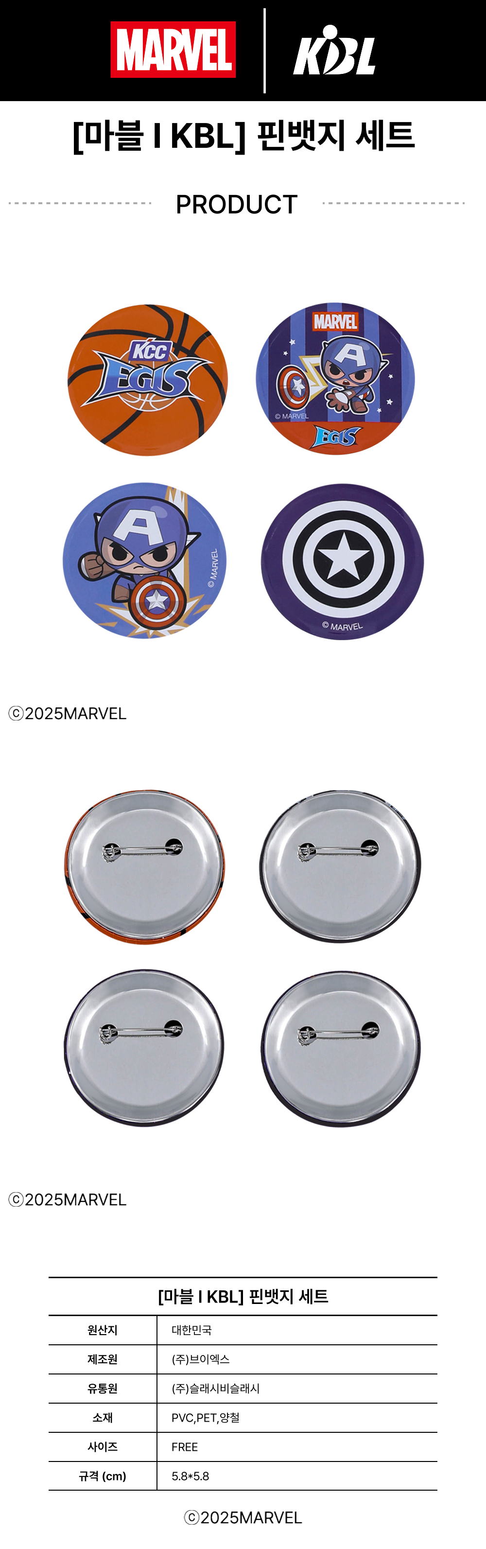 KBL X MARVELCollection Busan KCC Egis Captain America Pin Badge Set (4pcs)