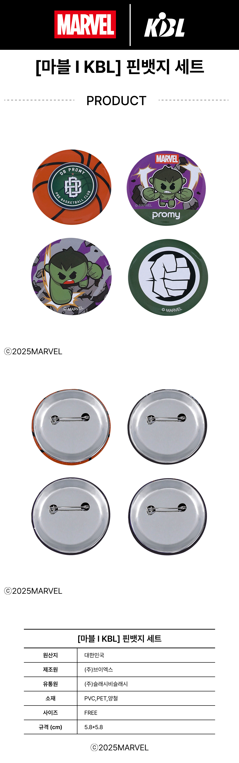 KBL X MARVELCollection Wonju DB Promy Hulk Pin Badge Set (4pcs)