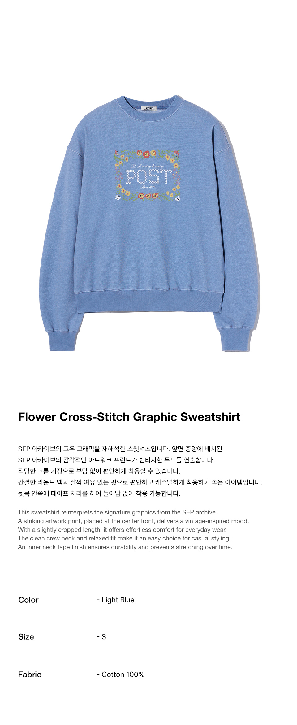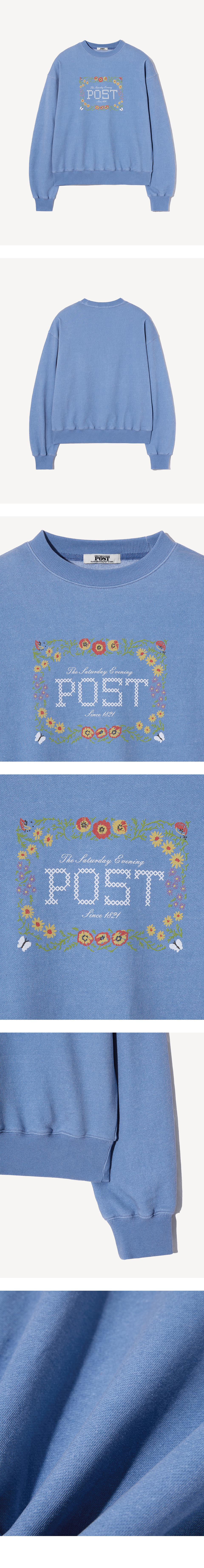 더 새터데이 이브닝 포스트 플라워 크로스스티치 그래픽 스웨트셔츠_라이트 블루